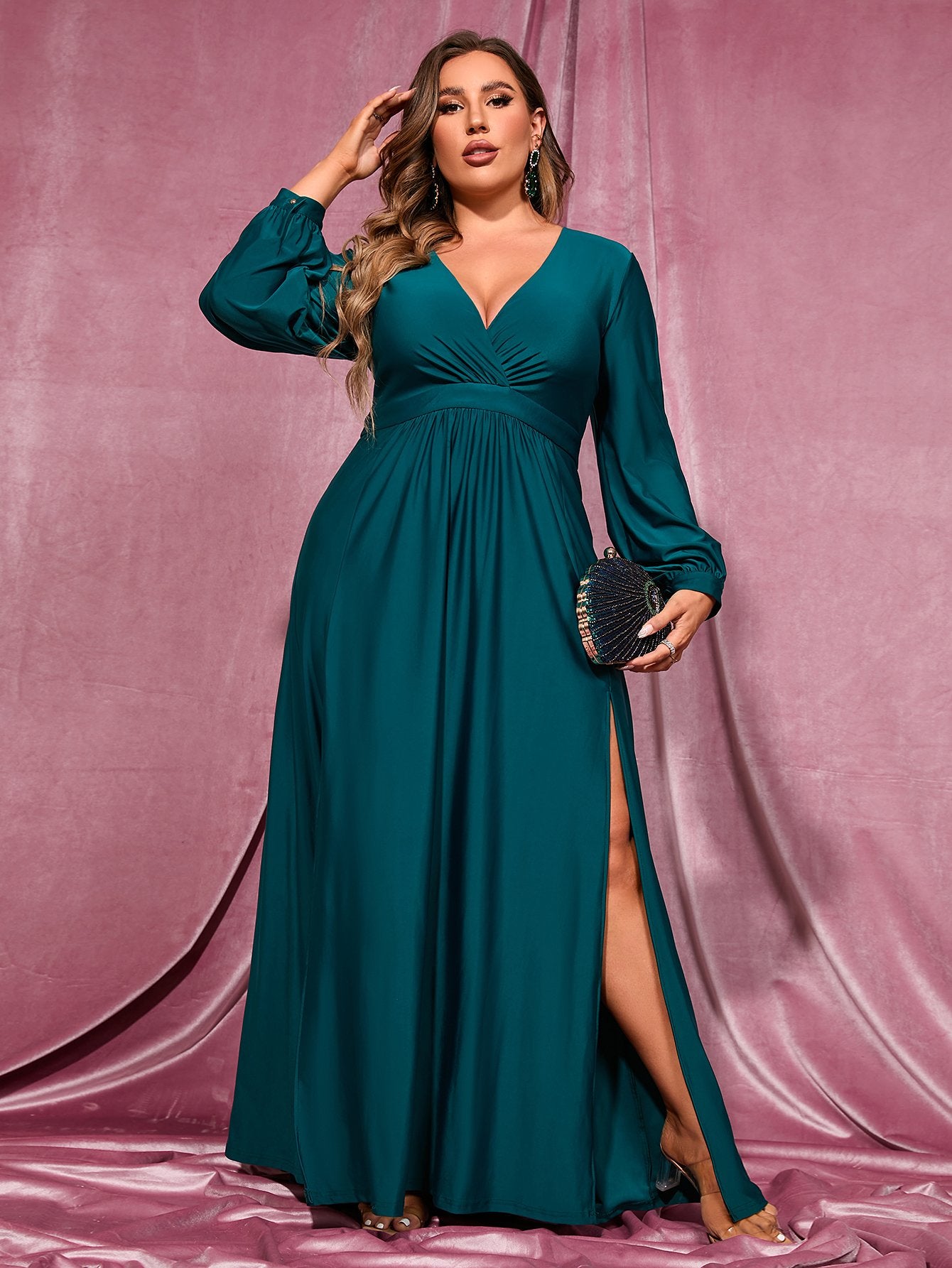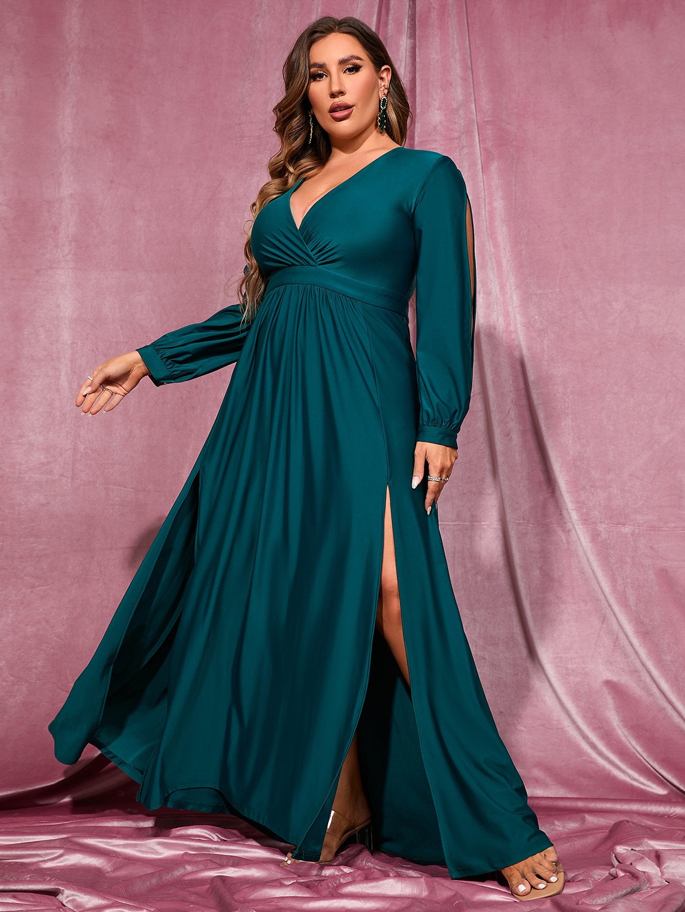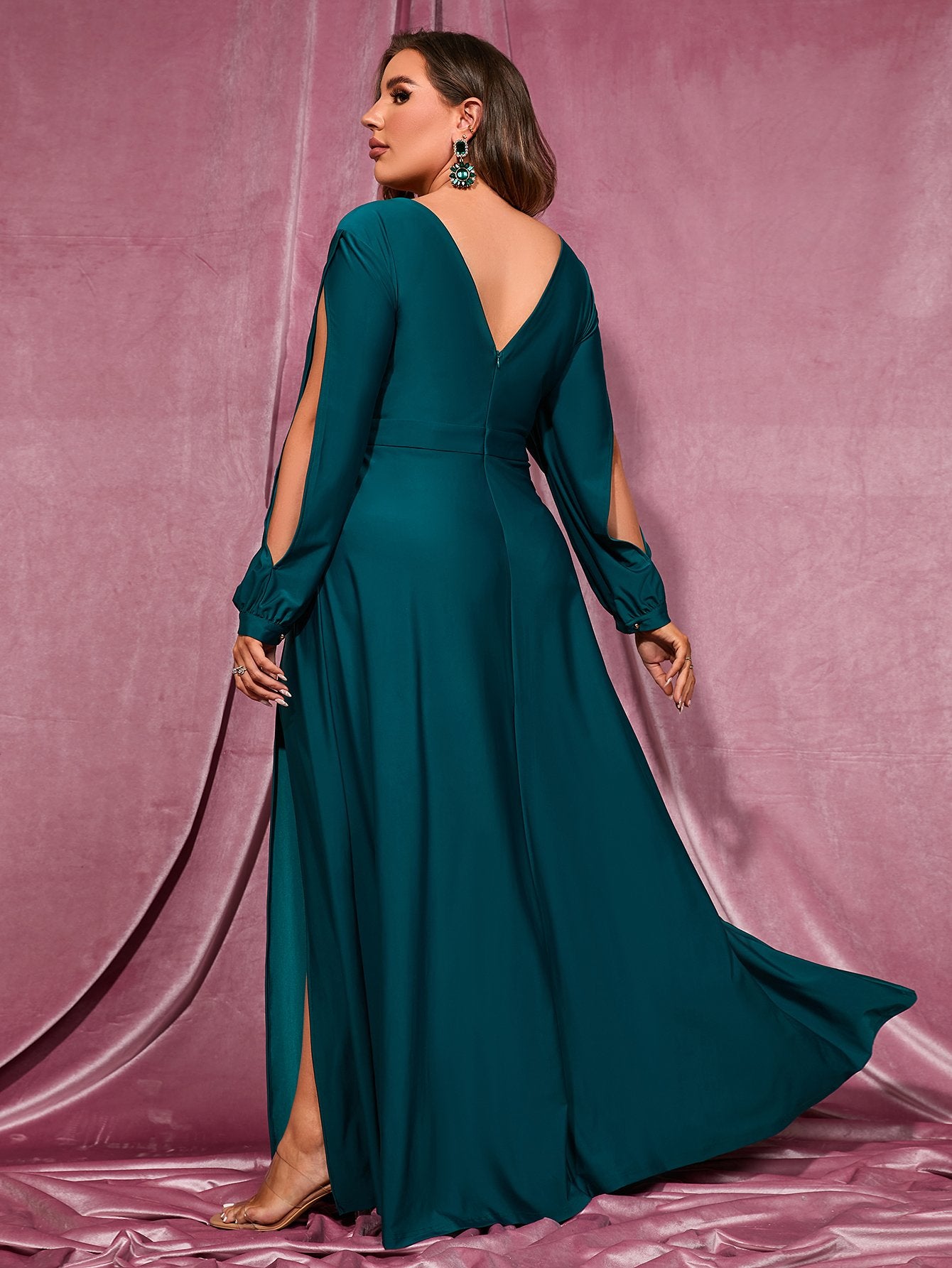 Bring the glamor to your wedding day with this plus size guest dress. An alluring emerald green, this long-sleeved knit dress is made for showing off your curves. With a flirty backless design and moderate stretch, it's perfect for dancing the night away at your reception. Add some glamor to your Big Day with this show-stopping wedding guest dress.
