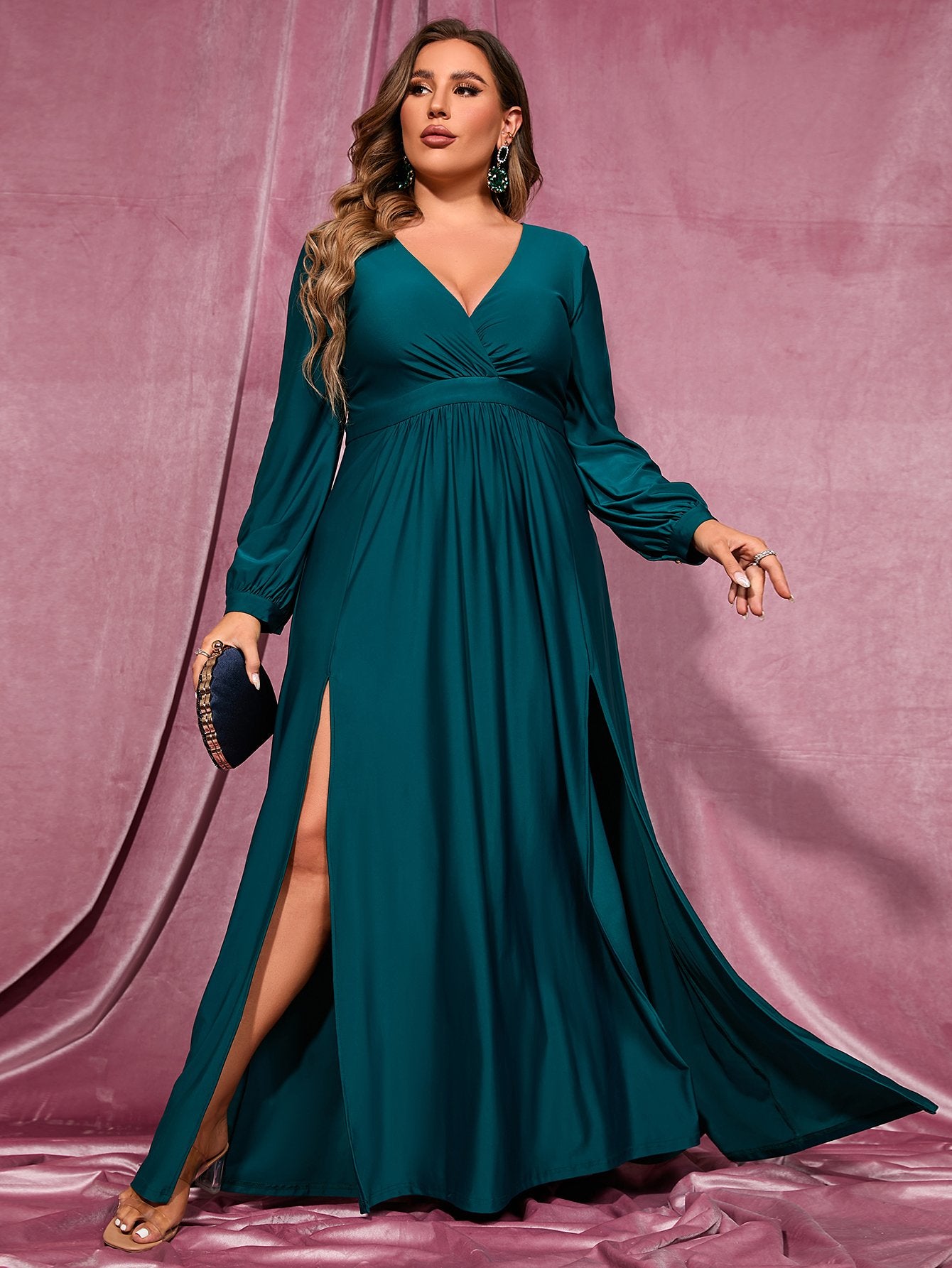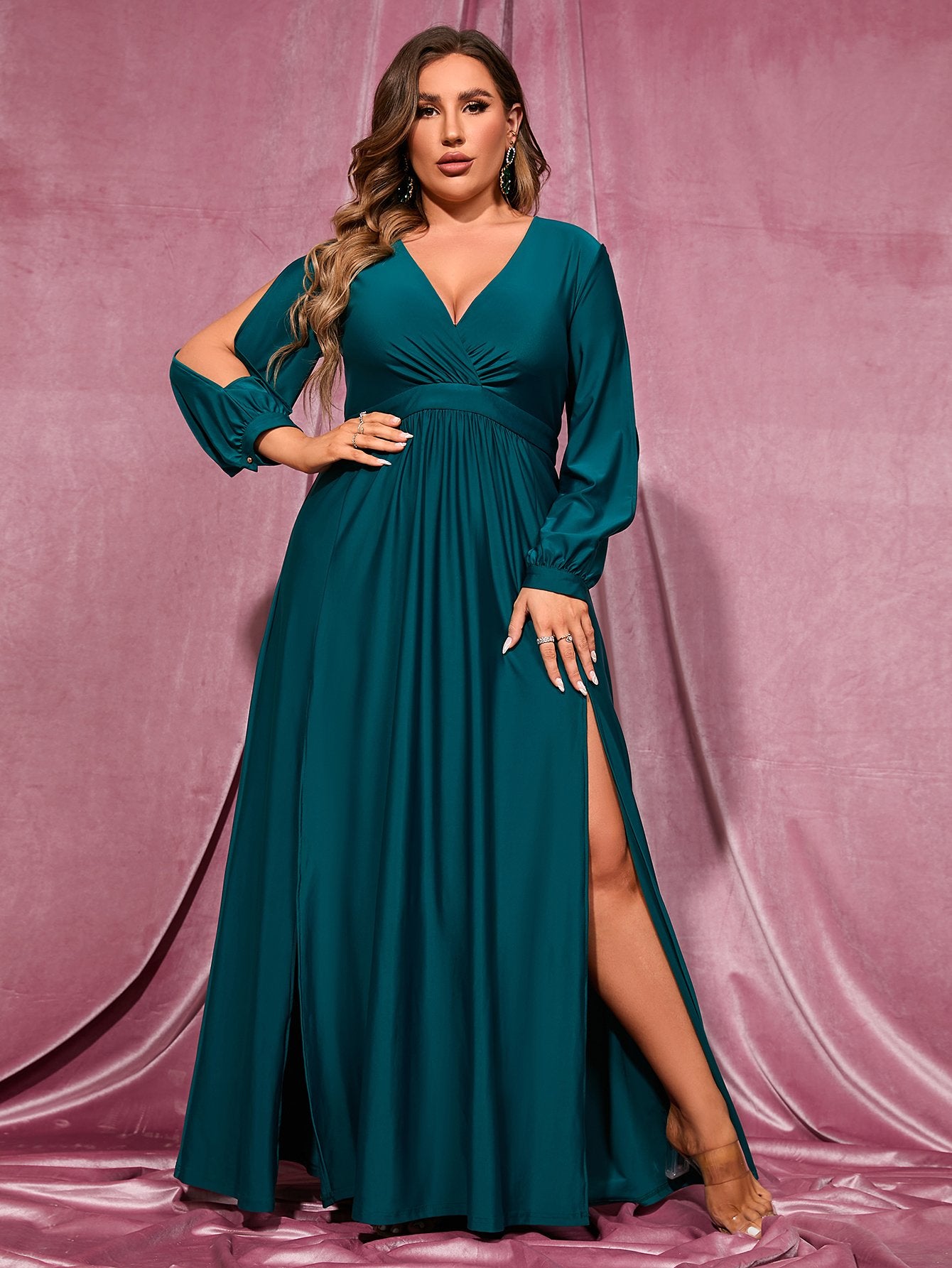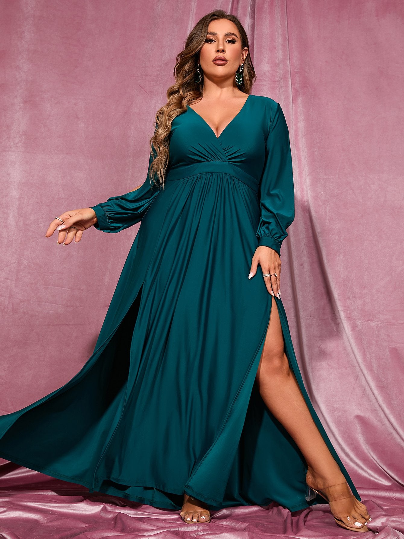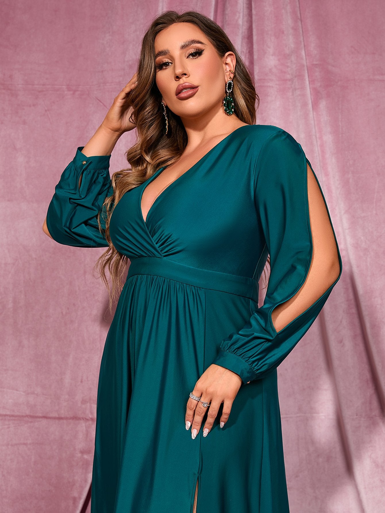 Bring the glamor to your wedding day with this plus size guest dress. An alluring emerald green, this long-sleeved knit dress is made for showing off your curves. With a flirty backless design and moderate stretch, it's perfect for dancing the night away at your reception. Add some glamor to your Big Day with this show-stopping wedding guest dress.