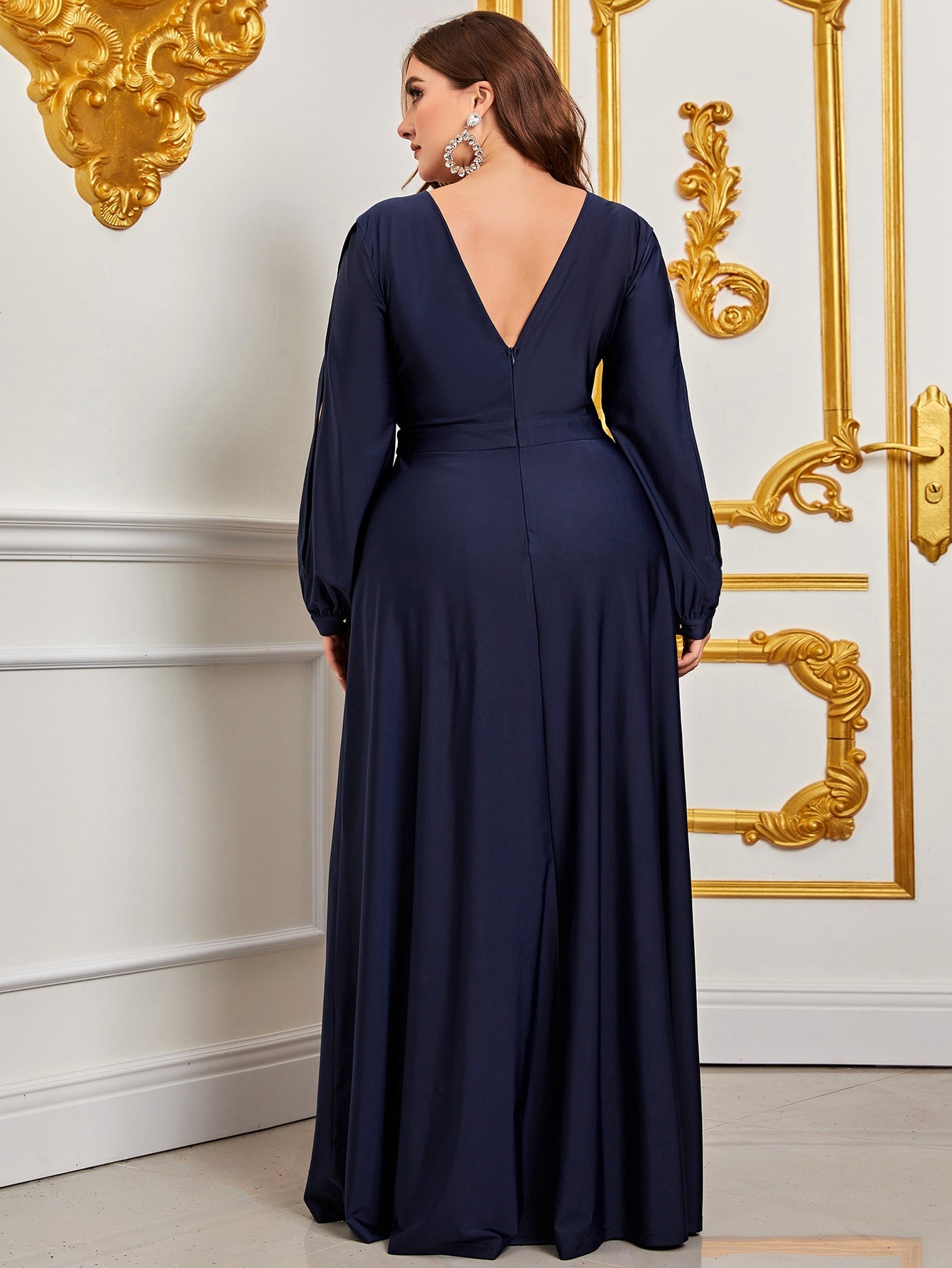 Bring the glamor to your wedding day with this plus size guest dress. An alluring navy blue, this long-sleeved knit dress is made for showing off your curves. With a flirty backless design and moderate stretch, it's perfect for dancing the night away at your reception. Add some glamor to your Big Day with this show-stopping wedding guest dress.