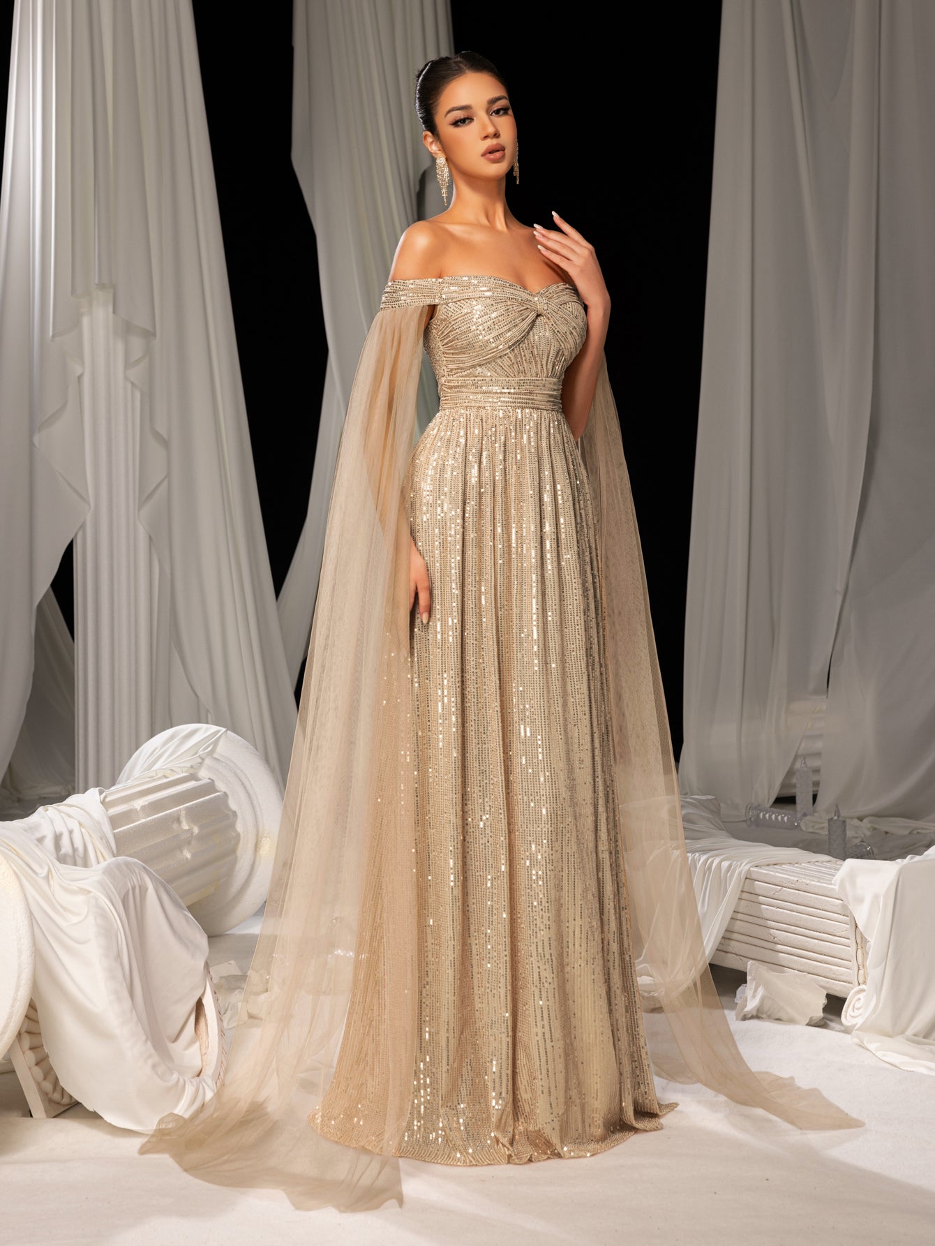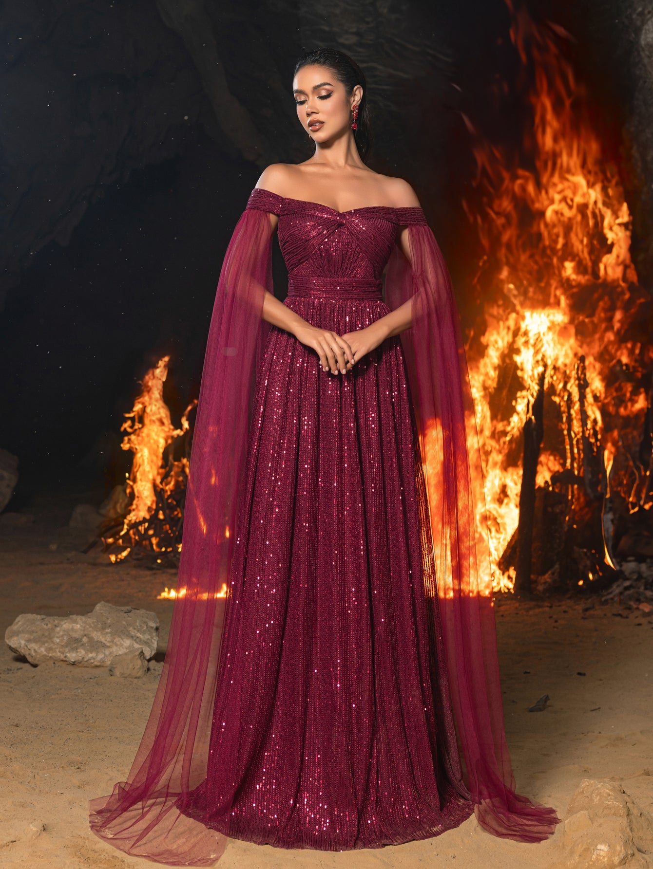 ✨ Timeless Elegance: The off-shoulder sequined gown combines a daring off-shoulder neckline with a form-fitting bodice, accentuating curves while exuding sophistication.