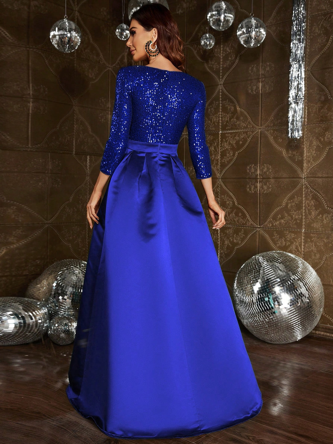 Elegant V Neck 3/4 Sleeve Slit A Line Prom Dress