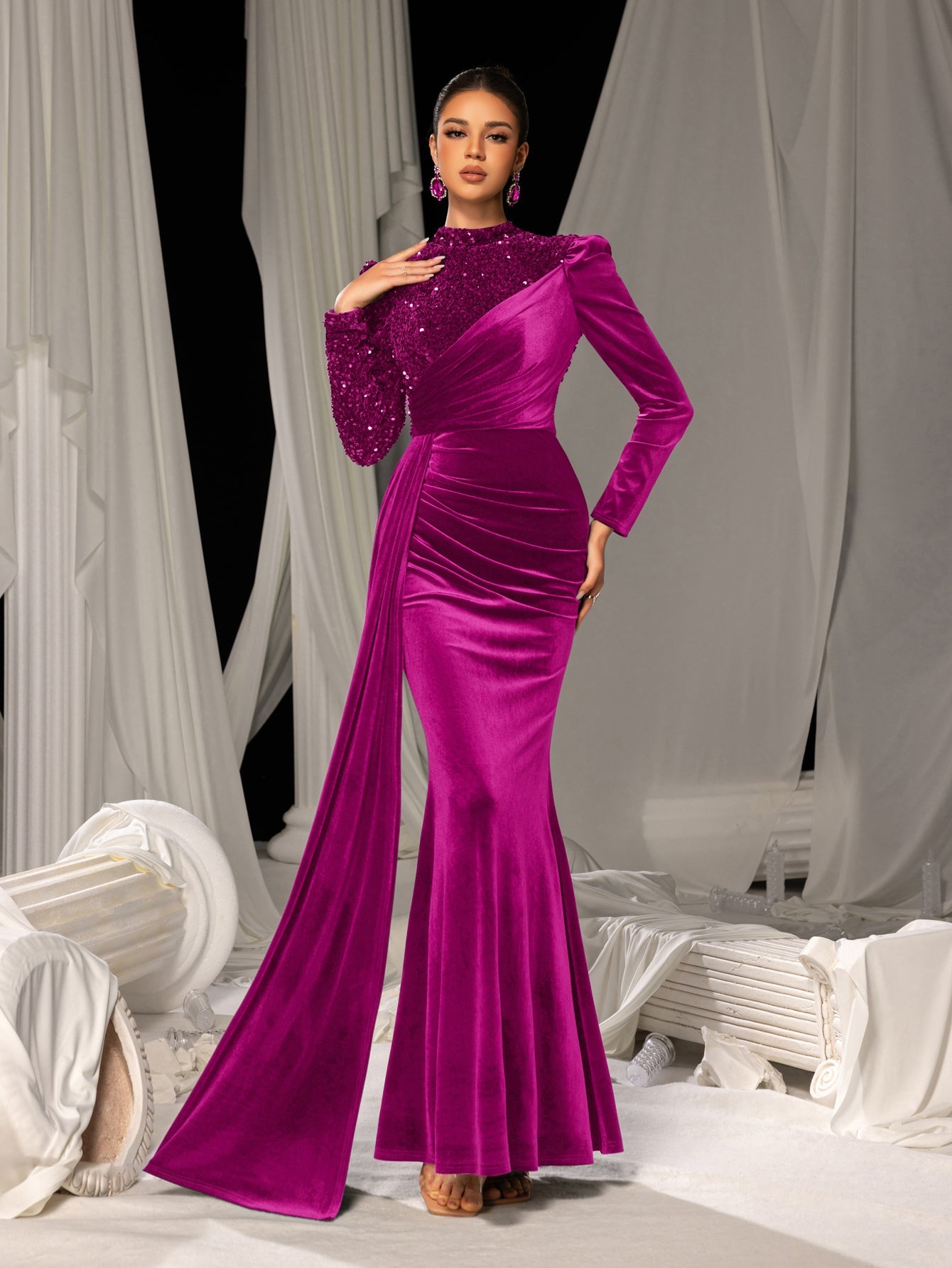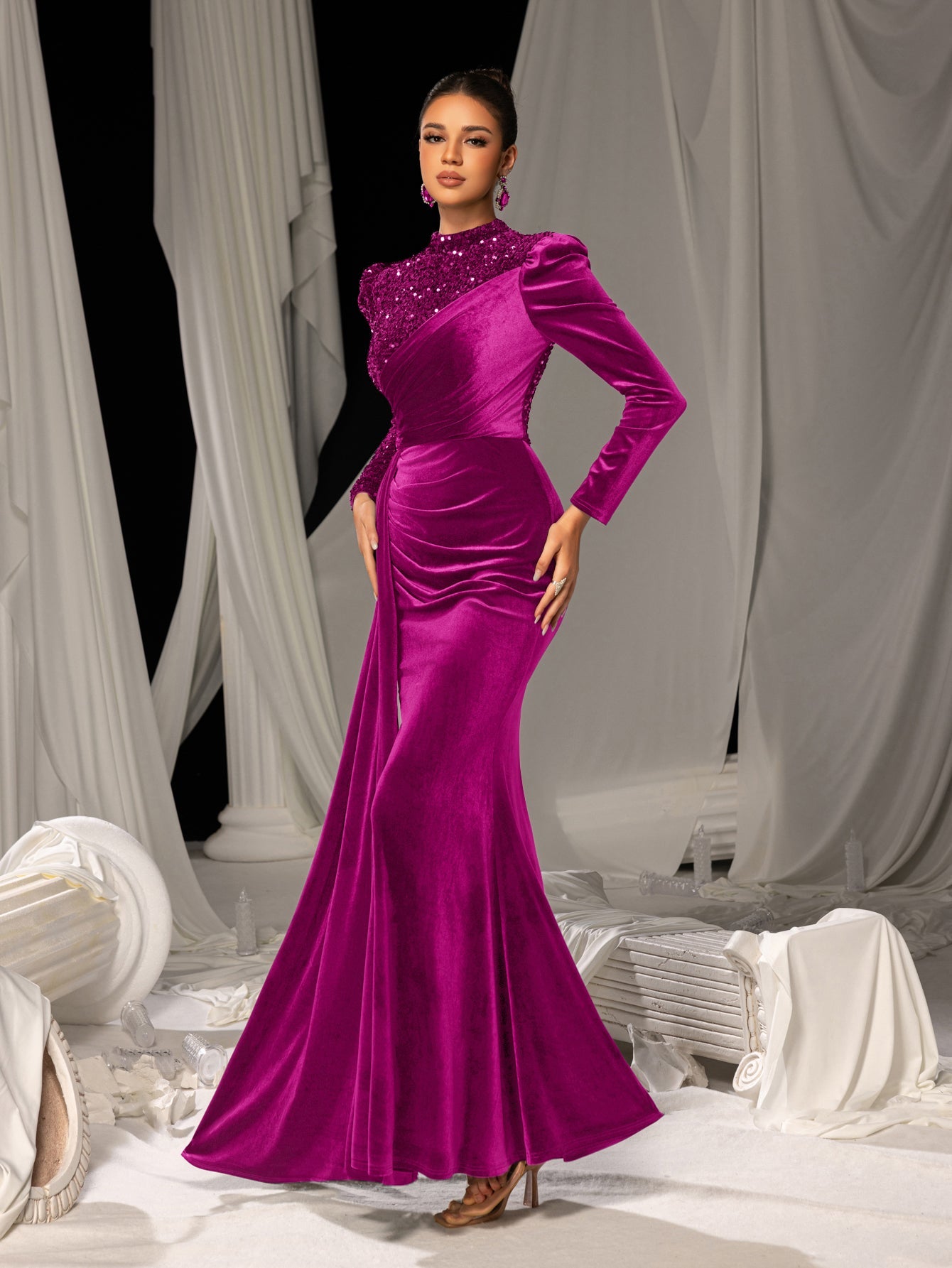 • Virtual Fitting Tip: Velvet drapes elegantly—refer to our size chart for precise measurements to ensure a flawless fit.