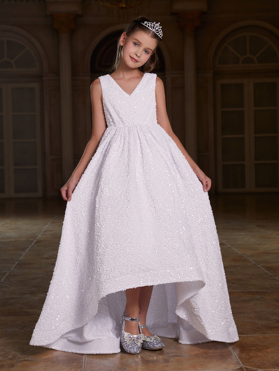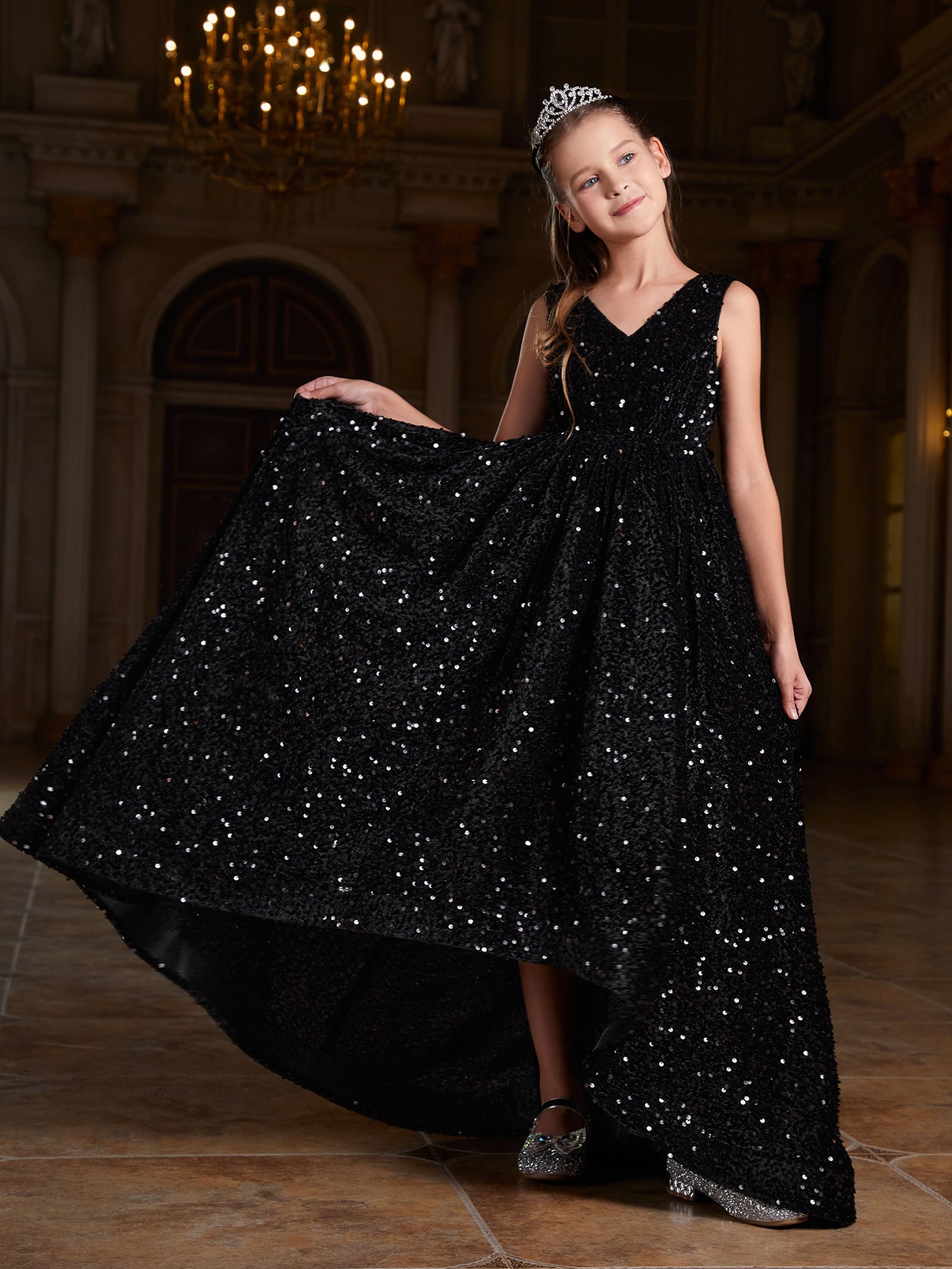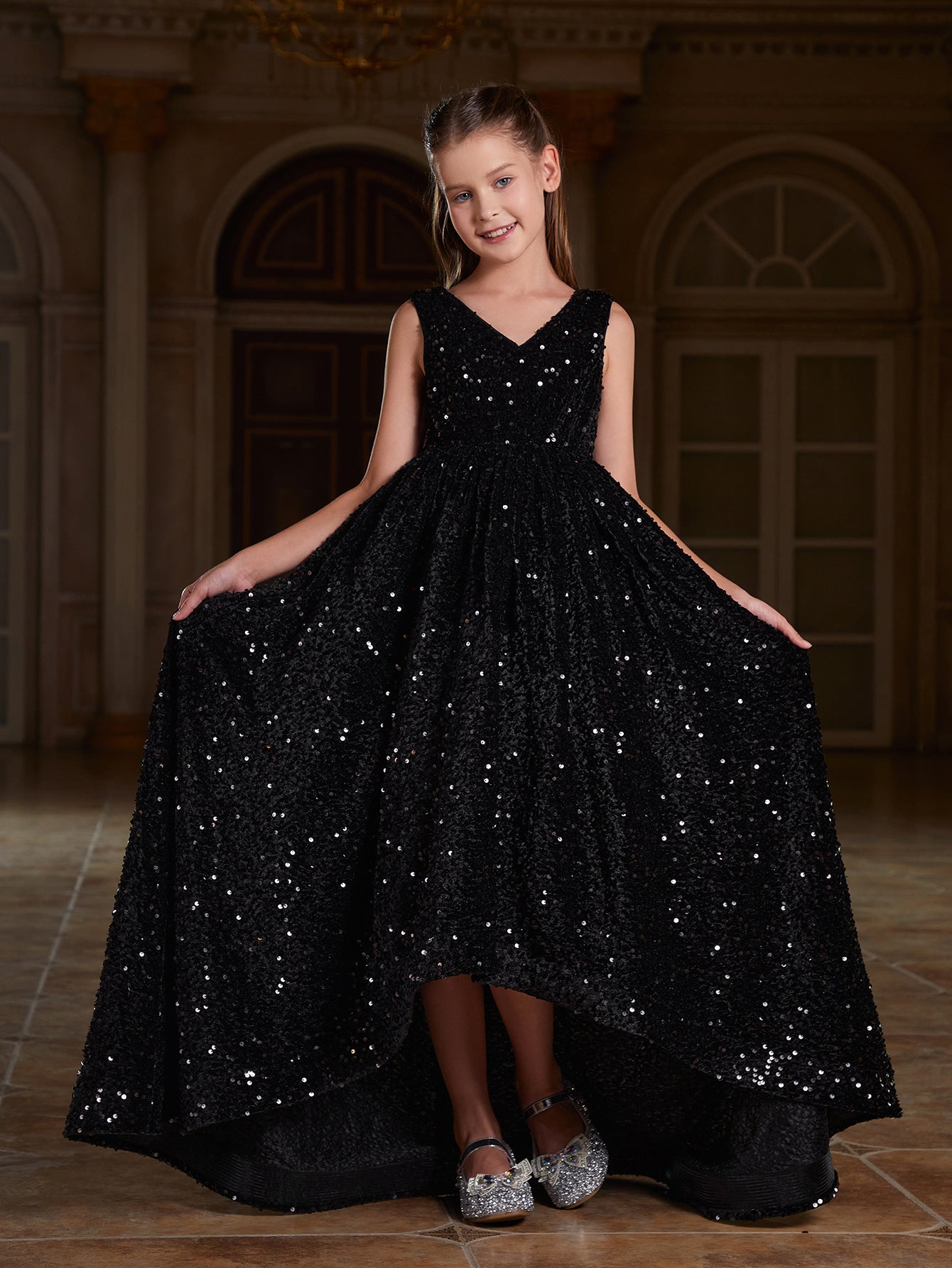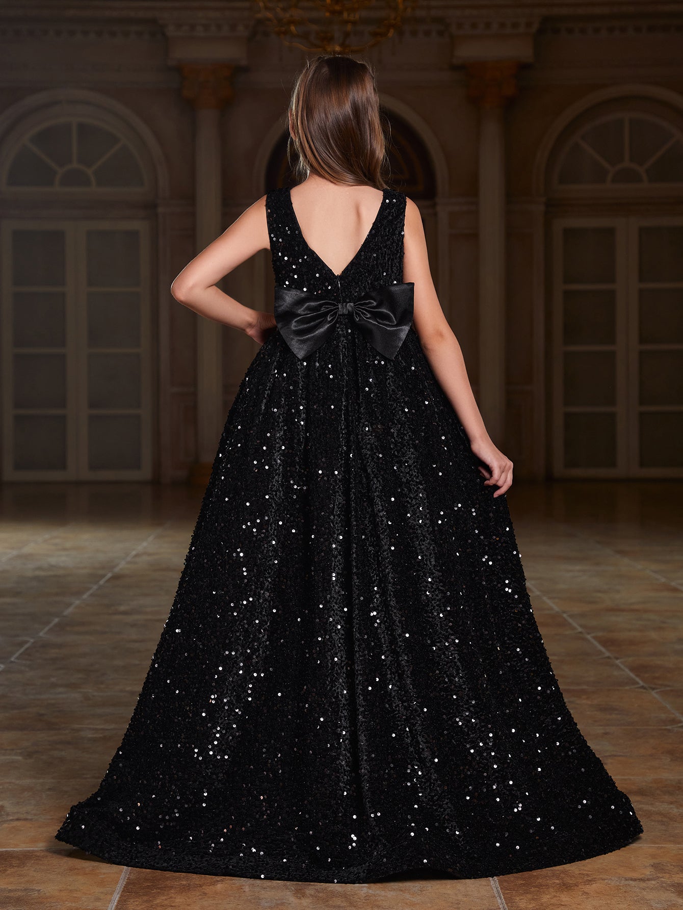 Girl's Bow Back Sleeveless Sequin Maxi Dress