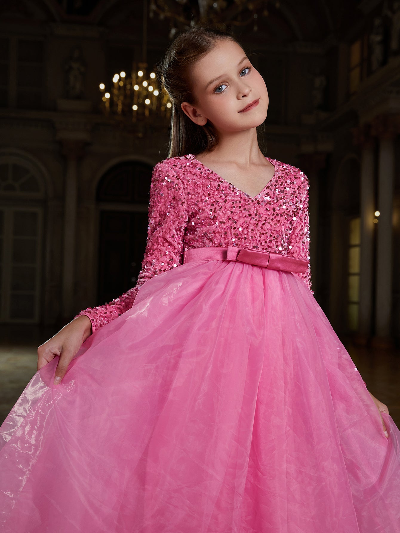 Girl's V Neck Long Sleeve A Line Prom Dress