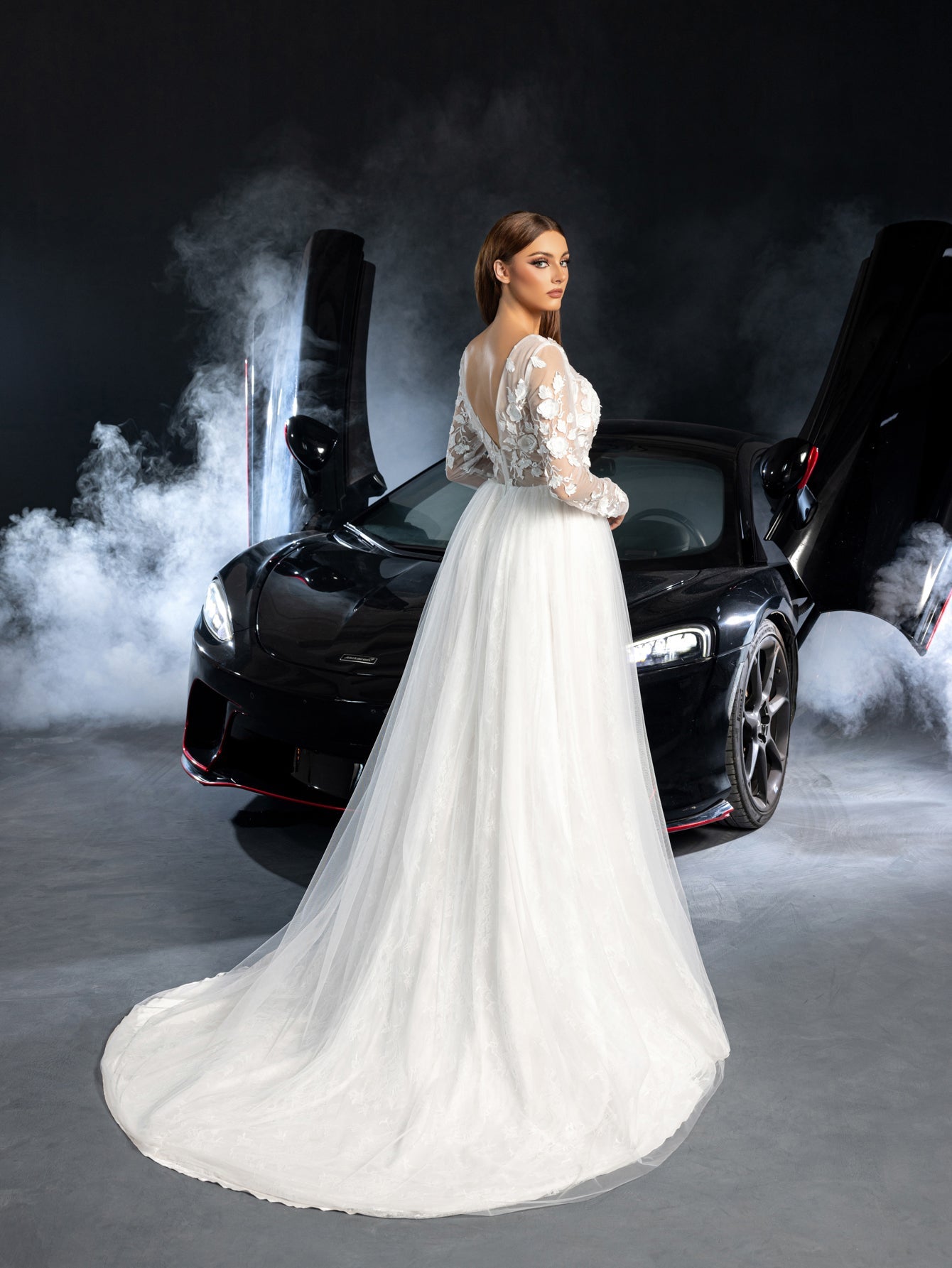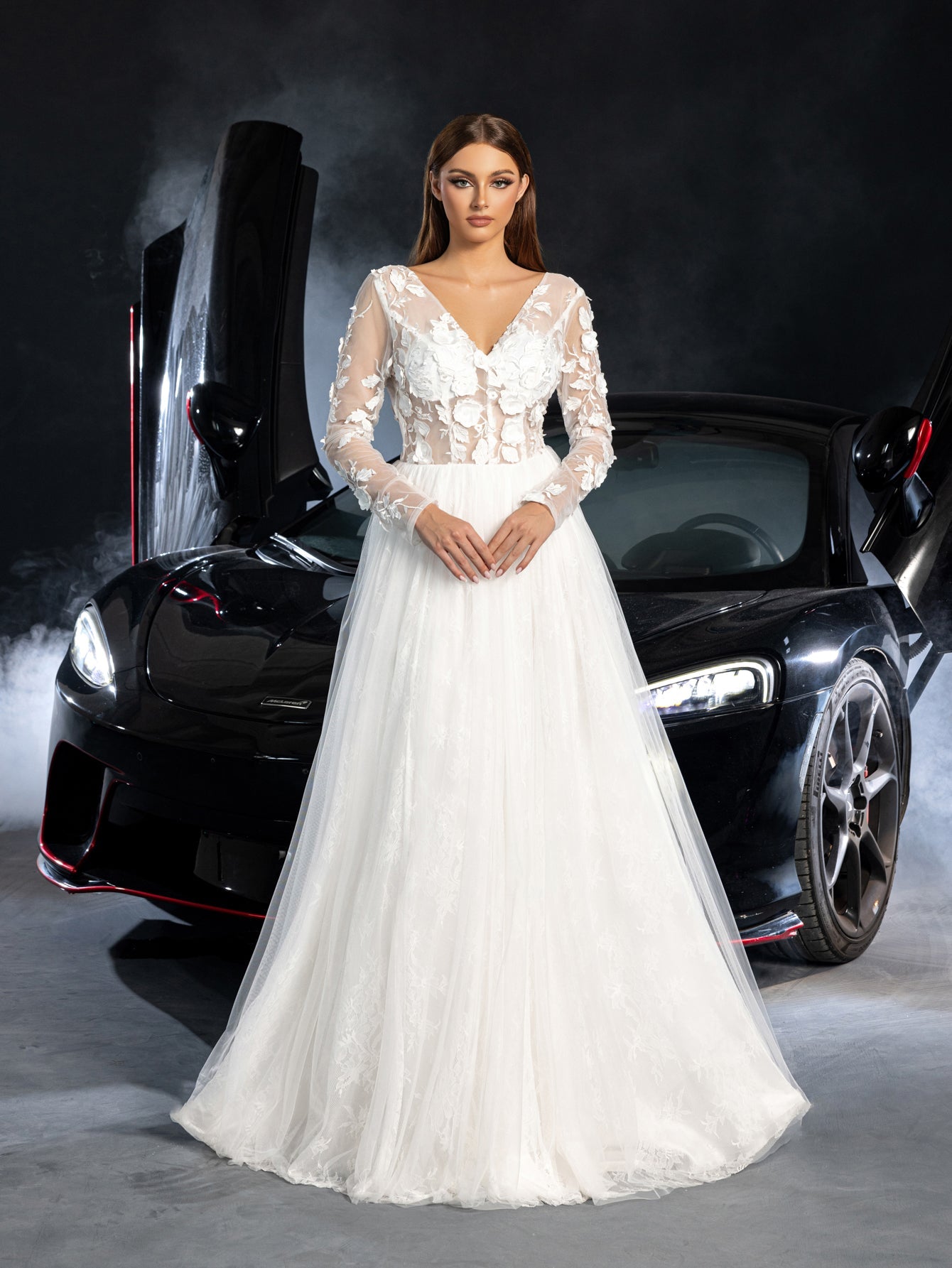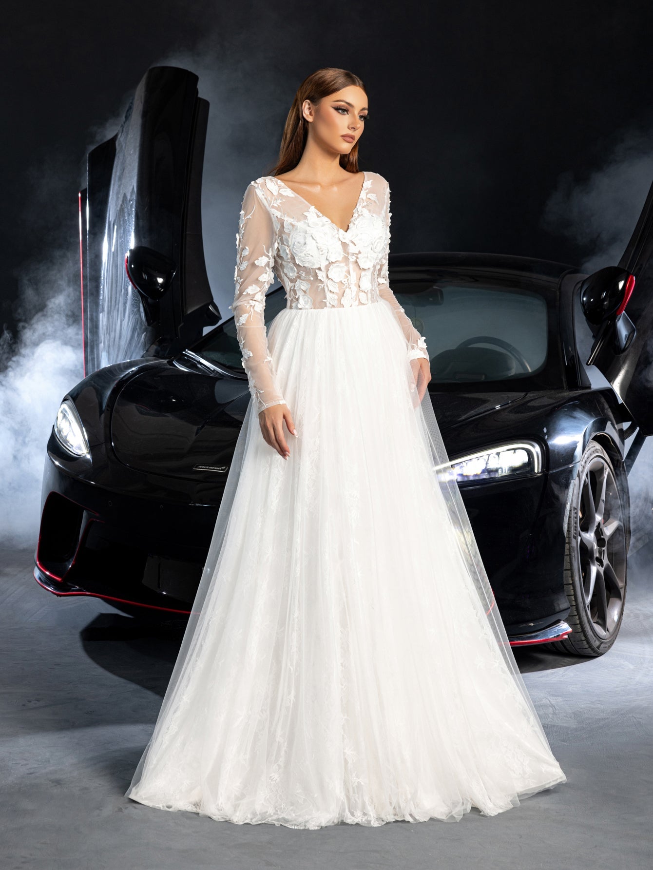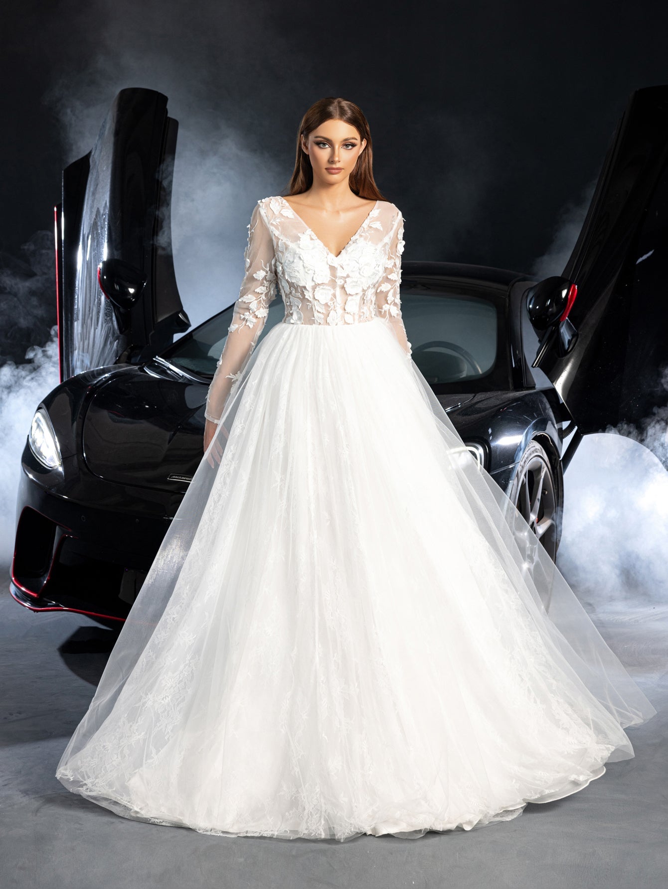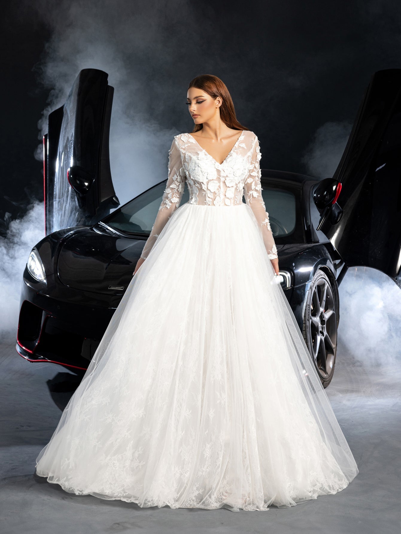 This gown combines classic elegance with modern sophistication, making it a perfect choice for the bride who desires a timeless and stunning look. Embrace your special moment in style and luxury with this breathtaking bridal dress.