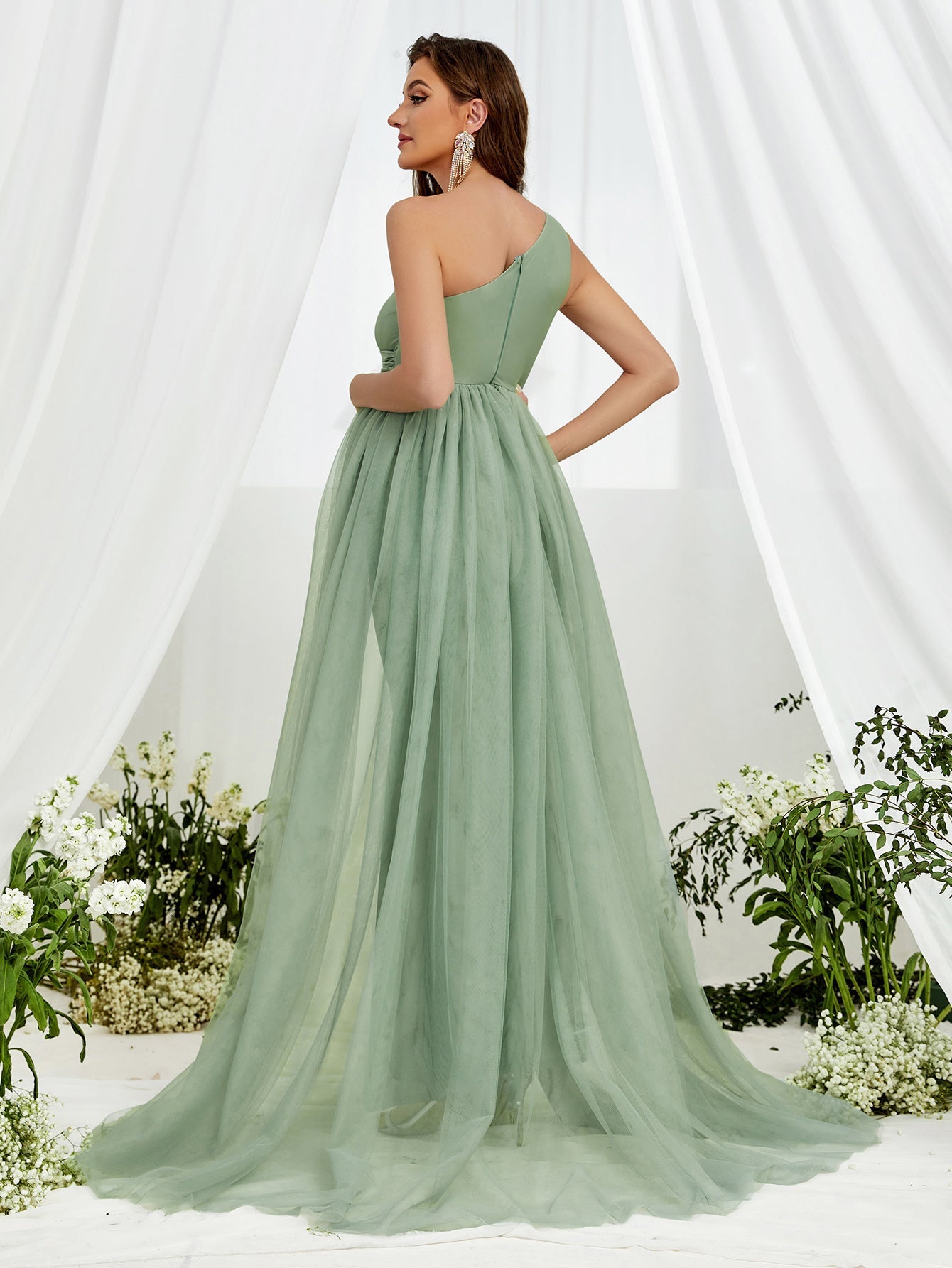 Maternity One Shoulder Sleeveless Contrast Mesh Dress