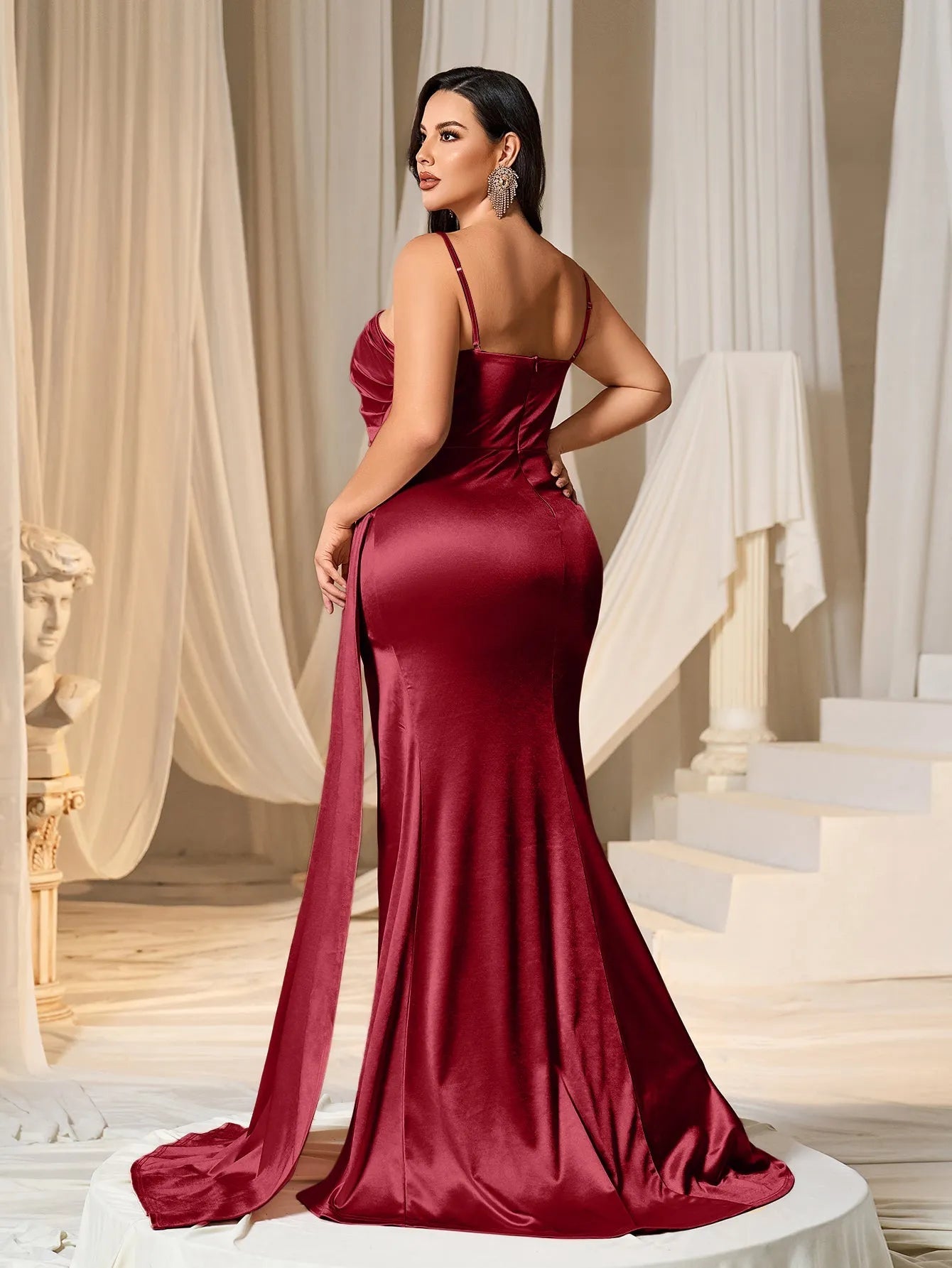 Make a bold statement and captivate every gaze with this exquisite satin gown, perfect for unforgettable moments.