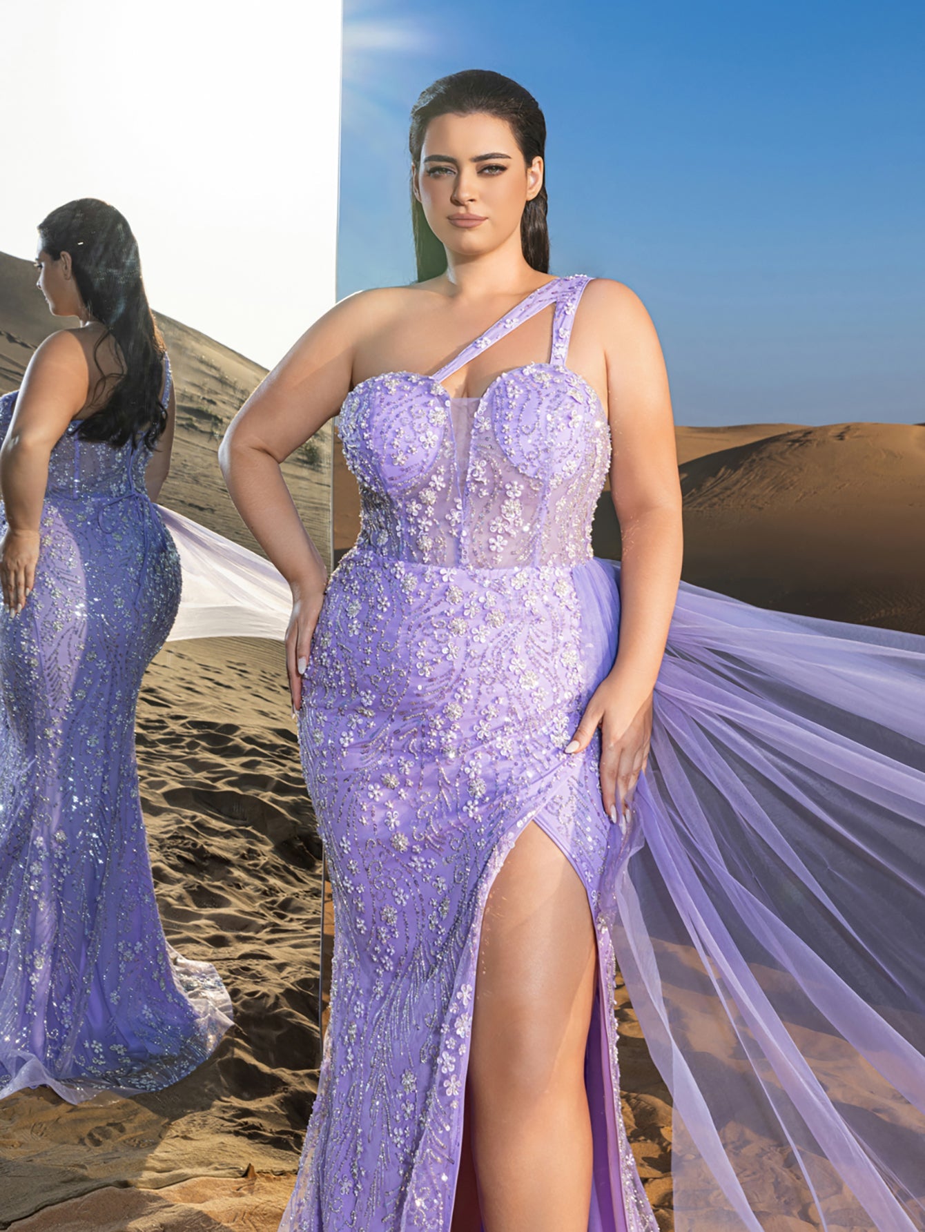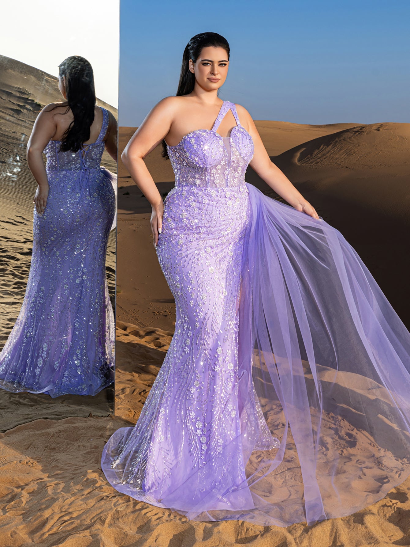 Embrace timeless elegance and luxury with this captivating evening gown, designed to make a striking impression. This stunning piece features intricate beaded sequins arranged in delicate cascading patterns, adding an exquisite shimmer to every step. The sweetheart neckline with an asymmetrical shoulder strap brings soft sophistication to the design, while the fitted silhouette flawlessly hugs the body before gracefully flaring into a mermaid hem. The gown’s ethereal tulle drape adds an enchanting touch, creating a flowing, romantic effect that moves effortlessly.