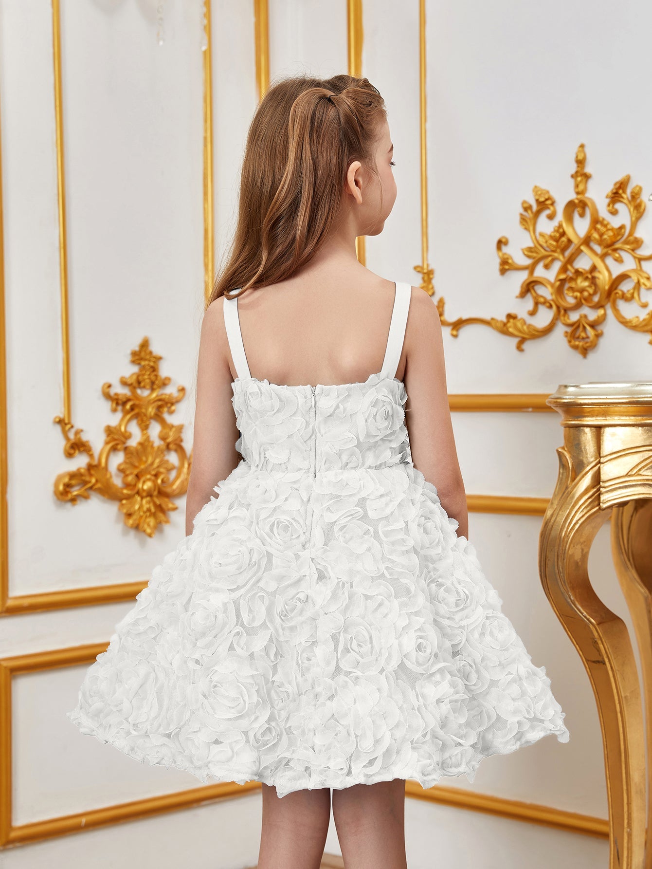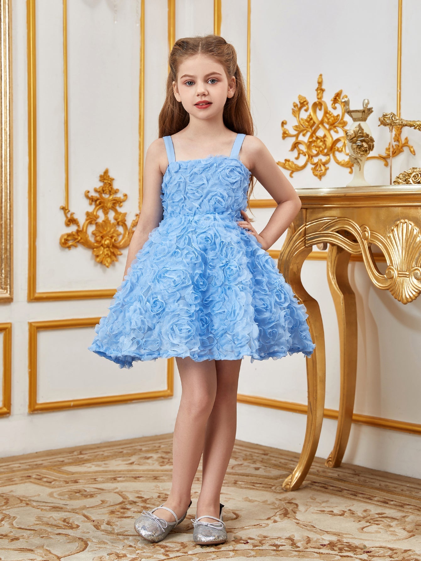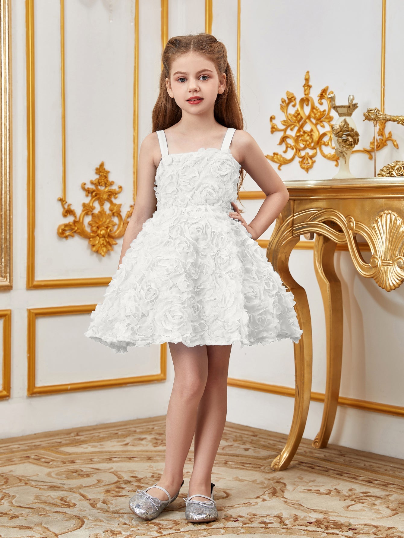 Elevate your little one's style with our stunning floral dress, perfect for making a grand entrance at any occasion. This dress features a square neckline and a fitted bodice that flares out into a full, flowy skirt adorned with beautiful floral appliqués. The lightweight, airy fabric ensures comfort and ease of movement, while the sparkling silver shoes add a touch of elegance.