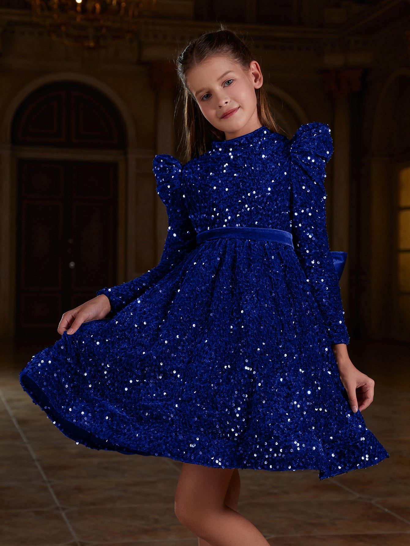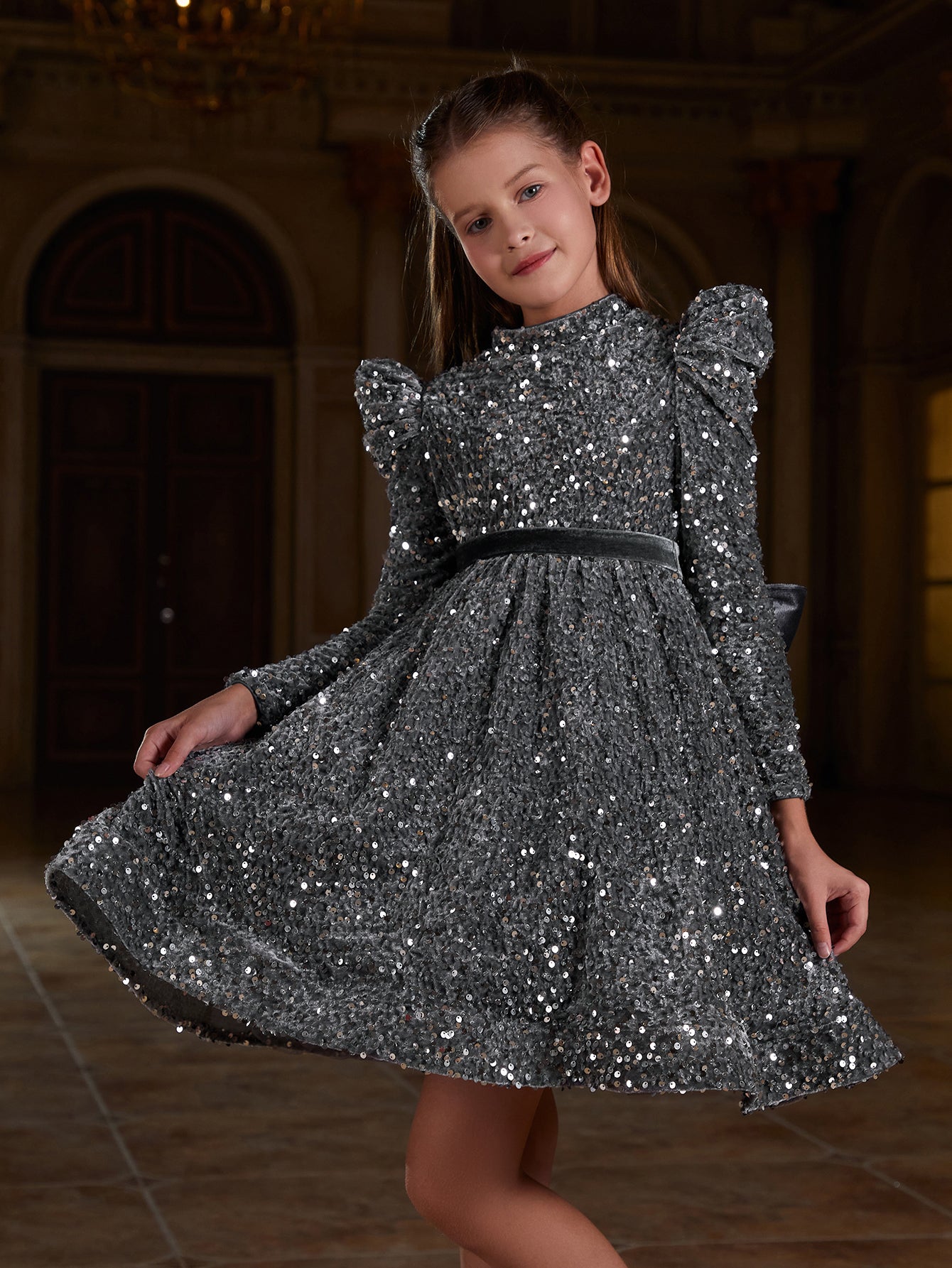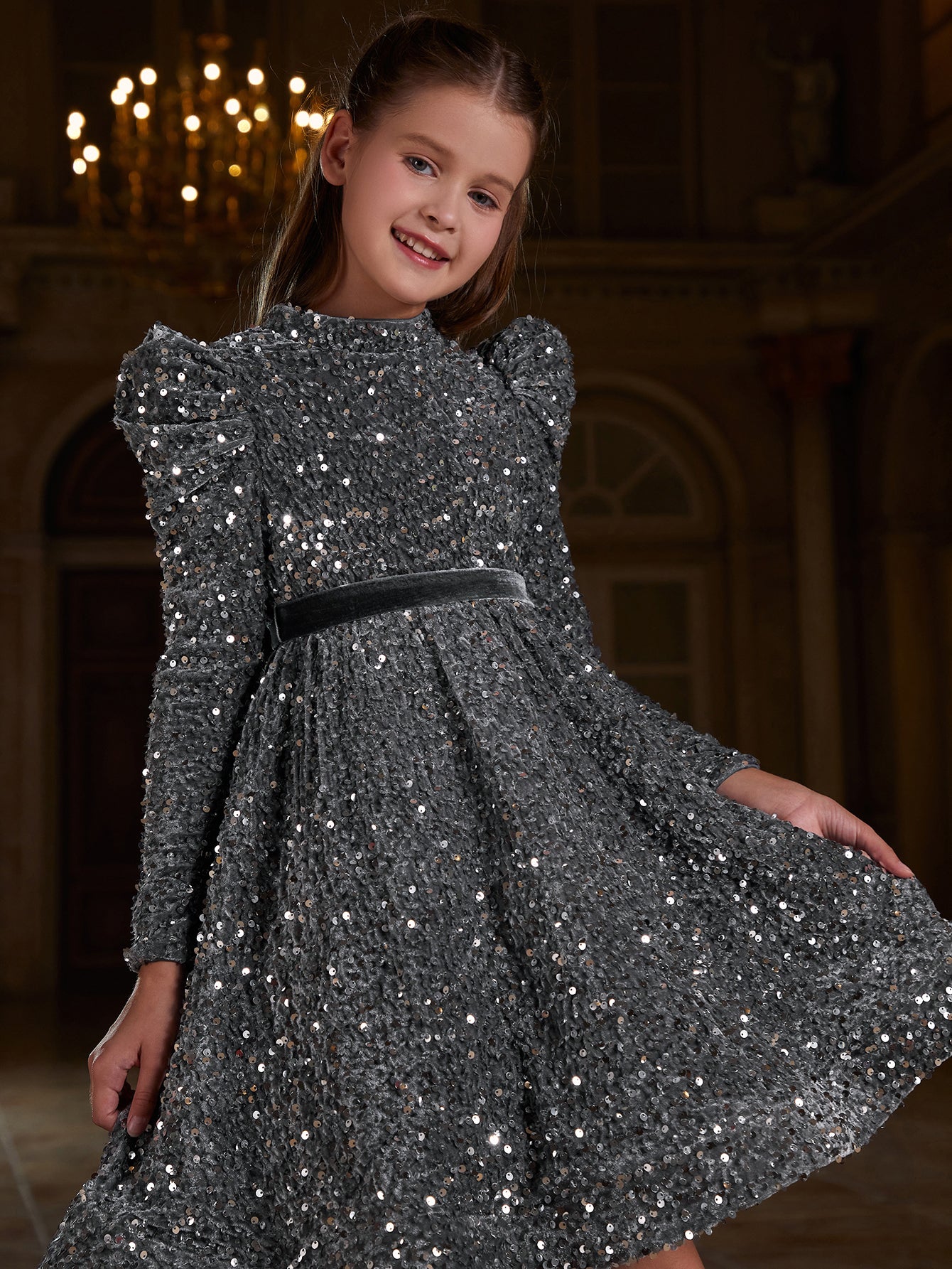 Tween Girls' Mock Neck Gigot Sleeve Sequin A Line Dress