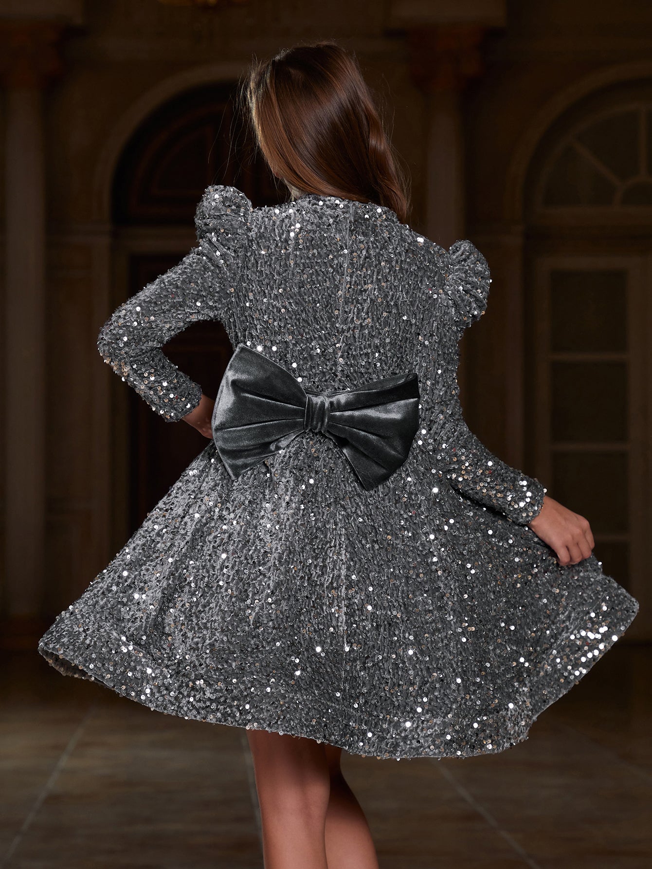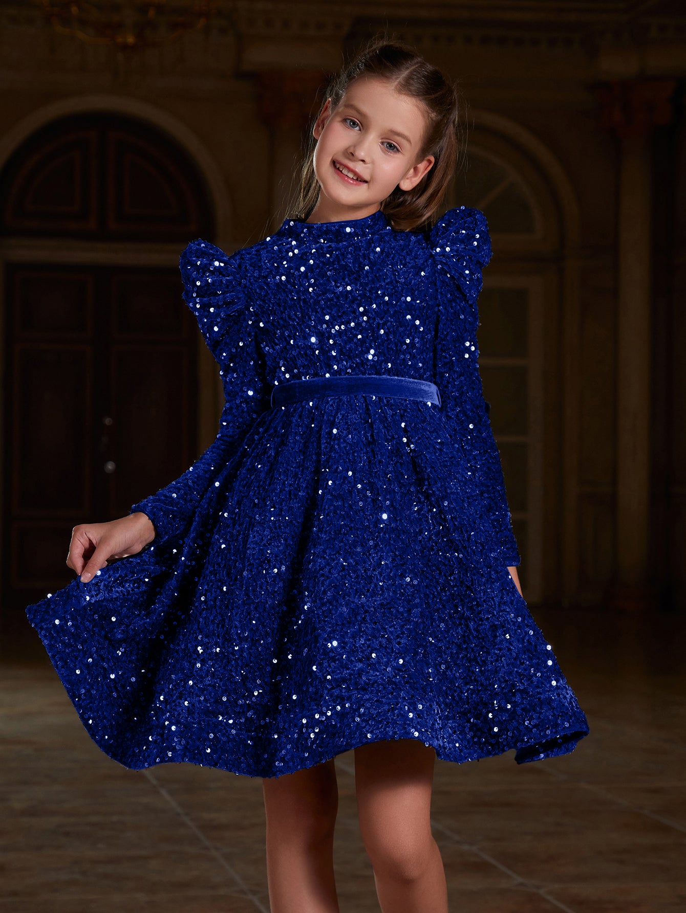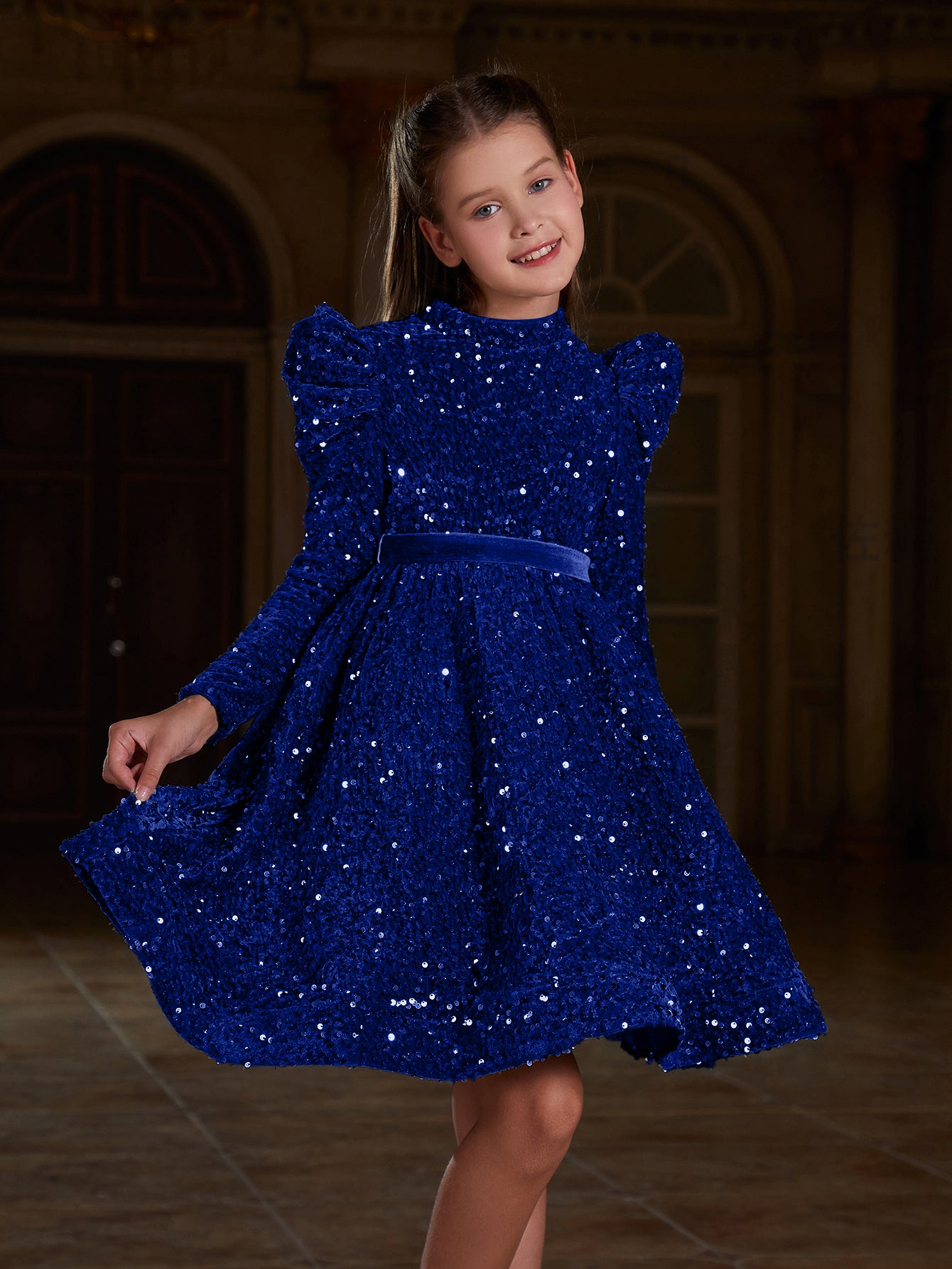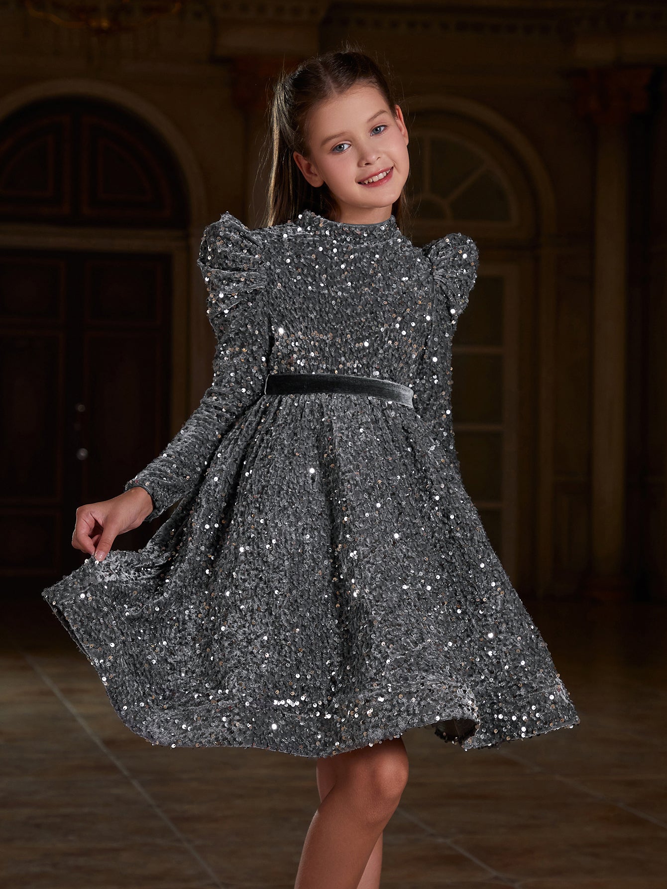 Tween Girls' Mock Neck Gigot Sleeve Sequin A Line Dress