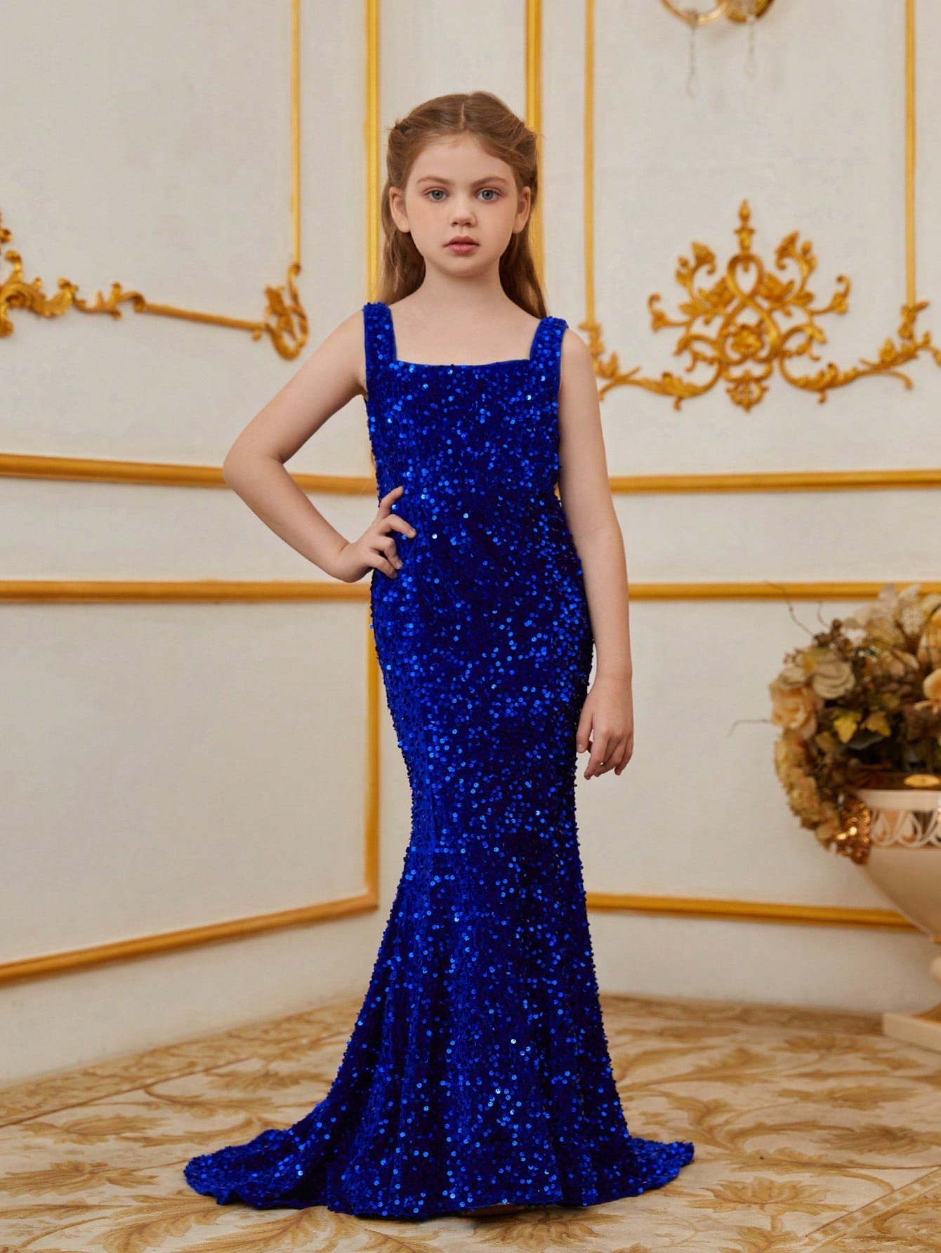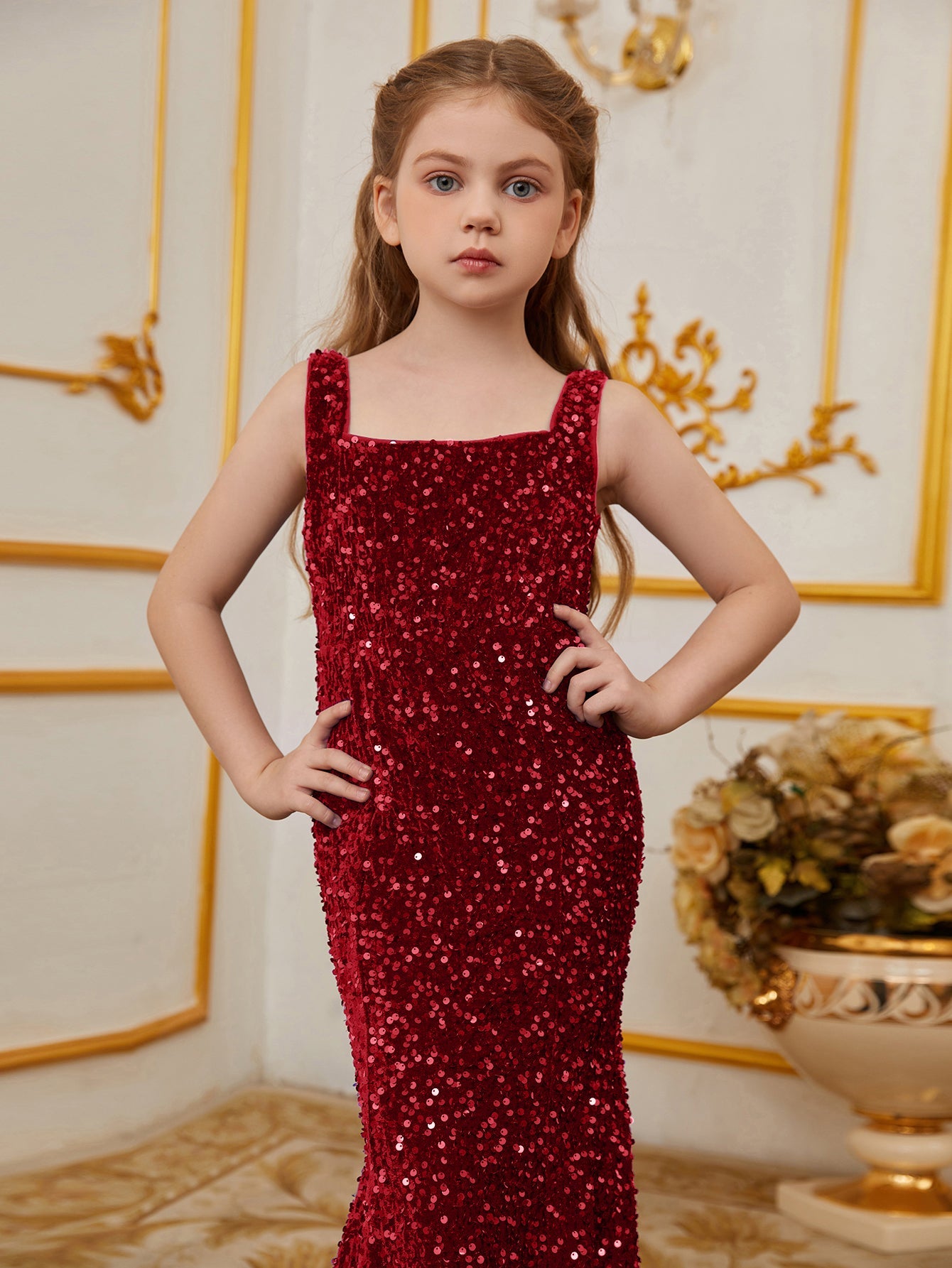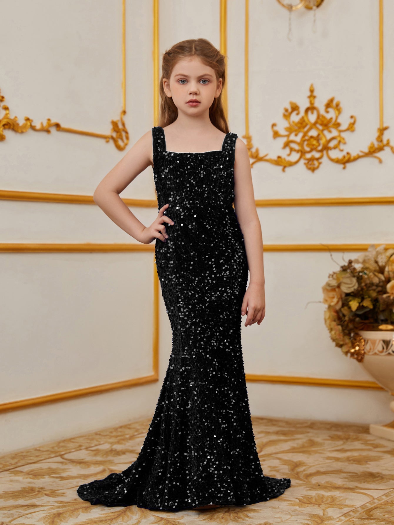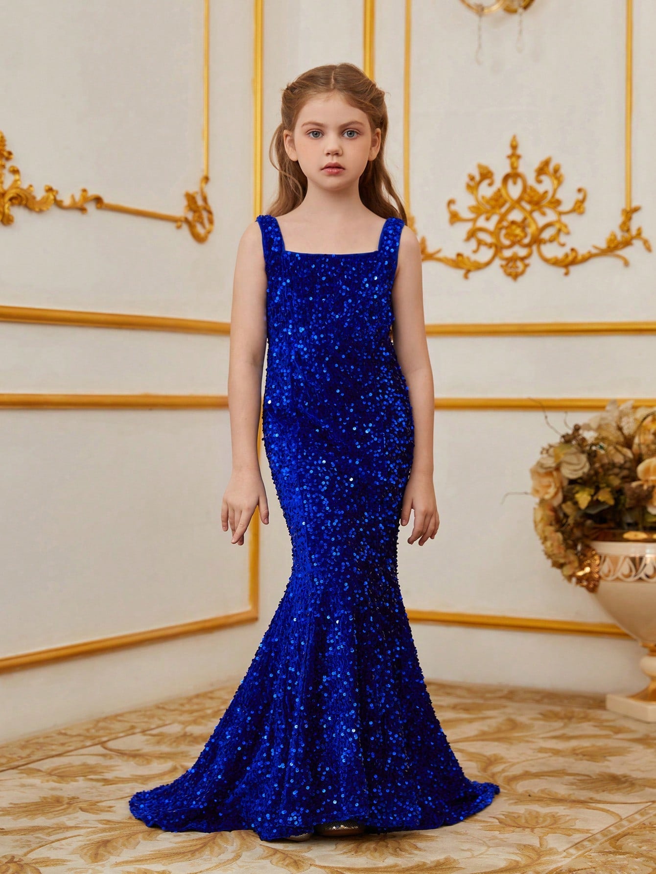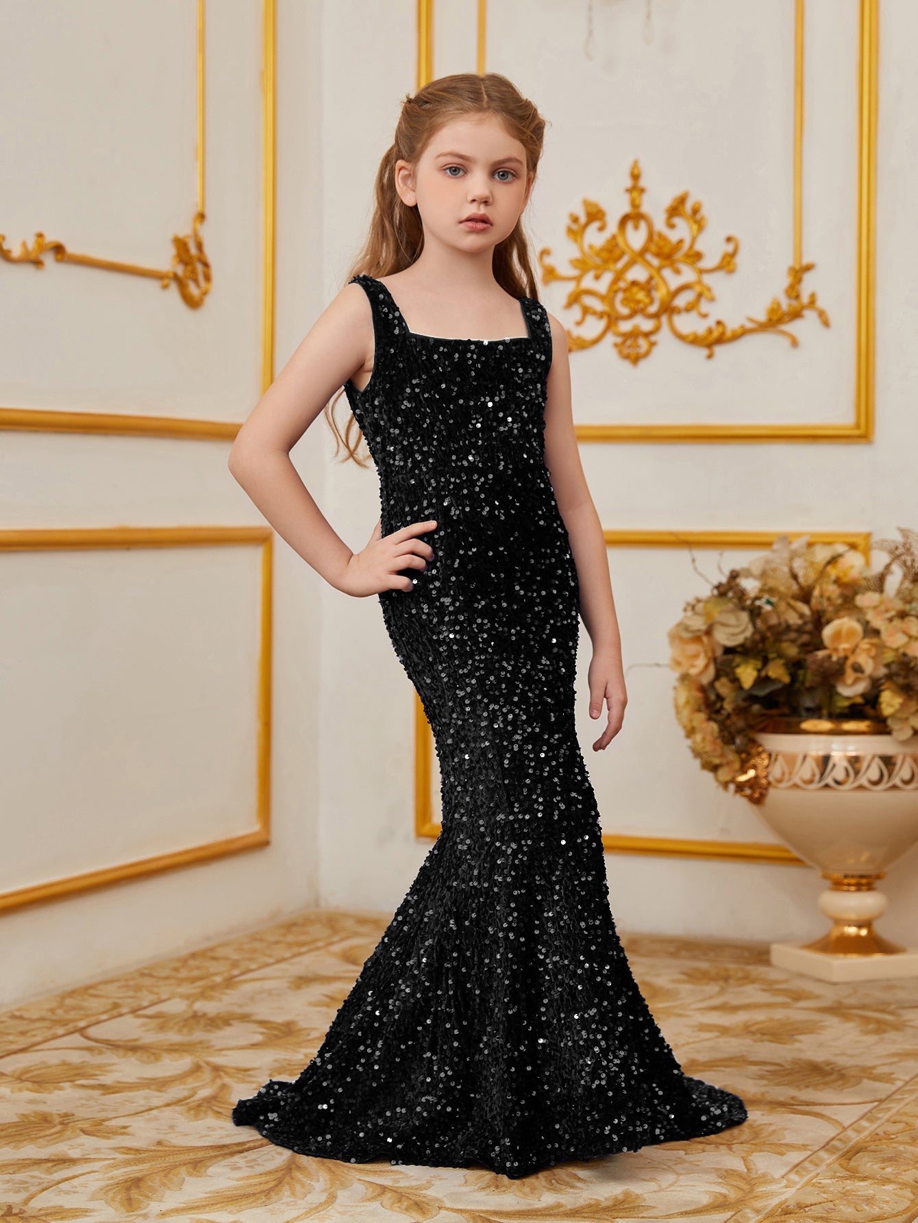 Illuminate your special occasion with our dazzling sequined mermaid gown, designed to make you feel like a true star. The gown features a sleek, sleeveless design with a fitted bodice that accentuates your figure, flowing into a stunning mermaid silhouette. The intricate sequin detailing catches the light, creating a glamorous and eye-catching effect.