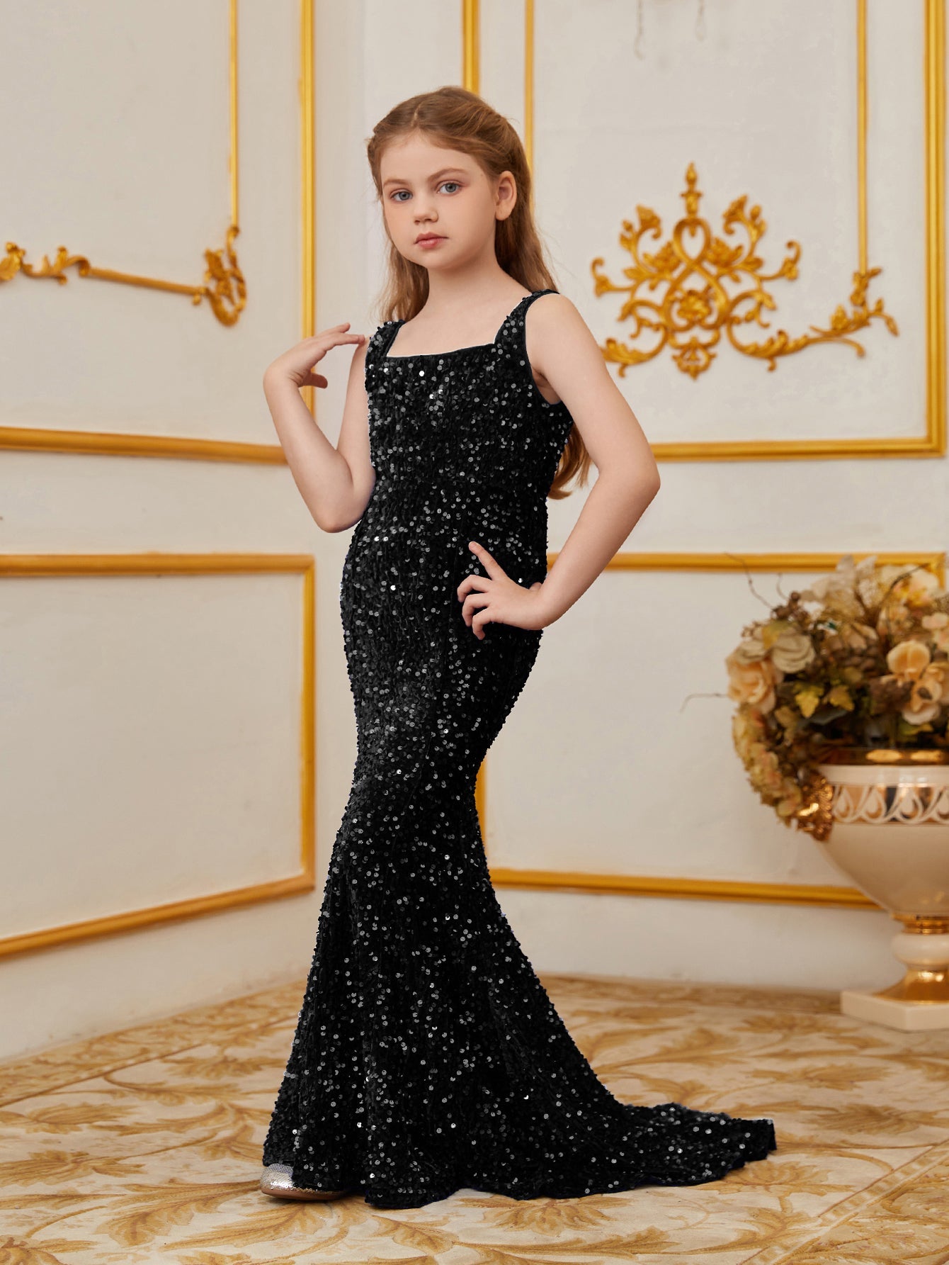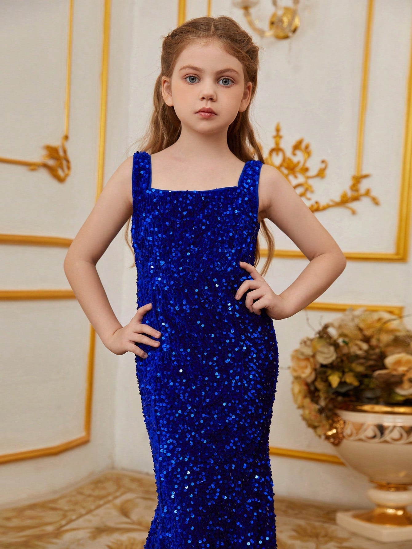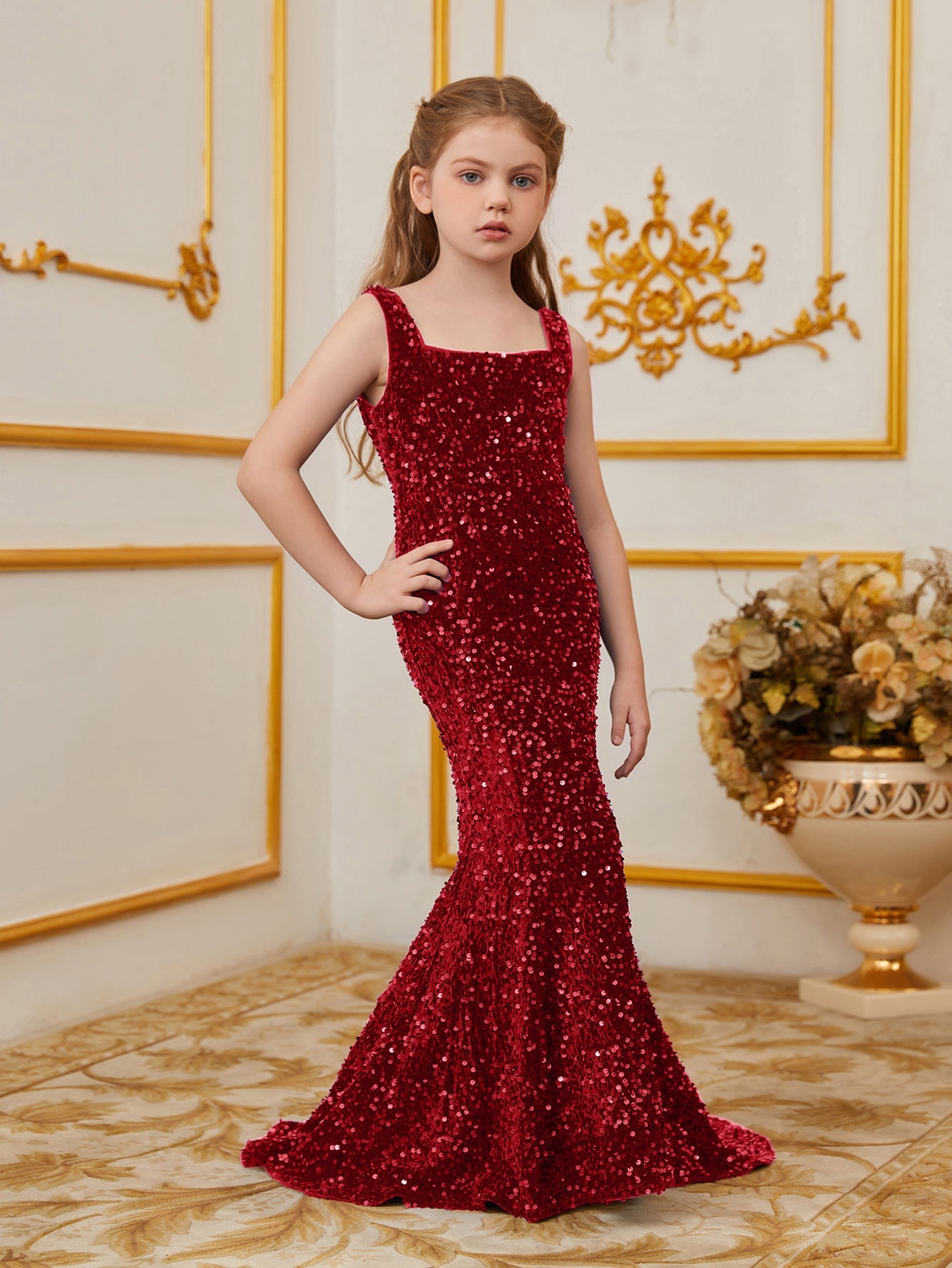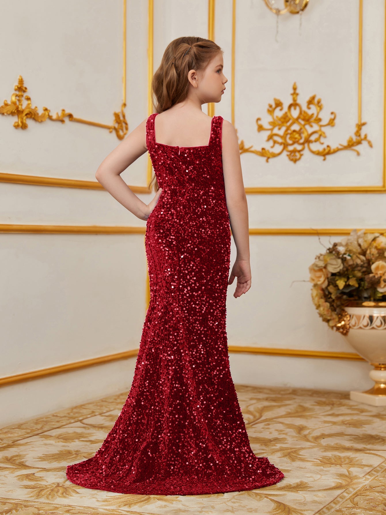 Illuminate your special occasion with our dazzling sequined mermaid gown, designed to make you feel like a true star. The gown features a sleek, sleeveless design with a fitted bodice that accentuates your figure, flowing into a stunning mermaid silhouette. The intricate sequin detailing catches the light, creating a glamorous and eye-catching effect.