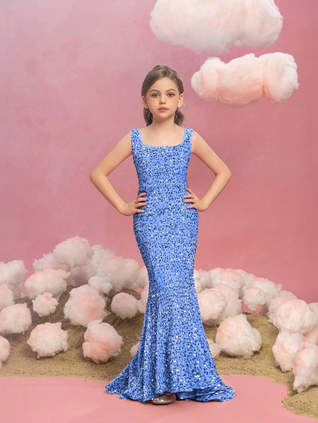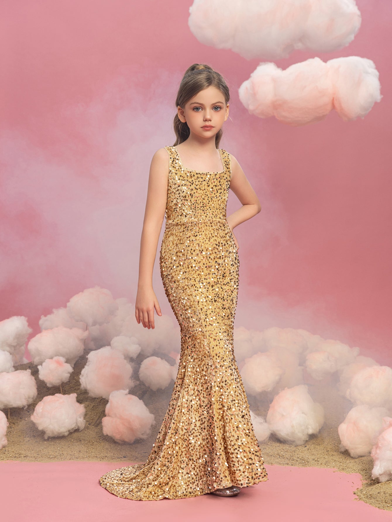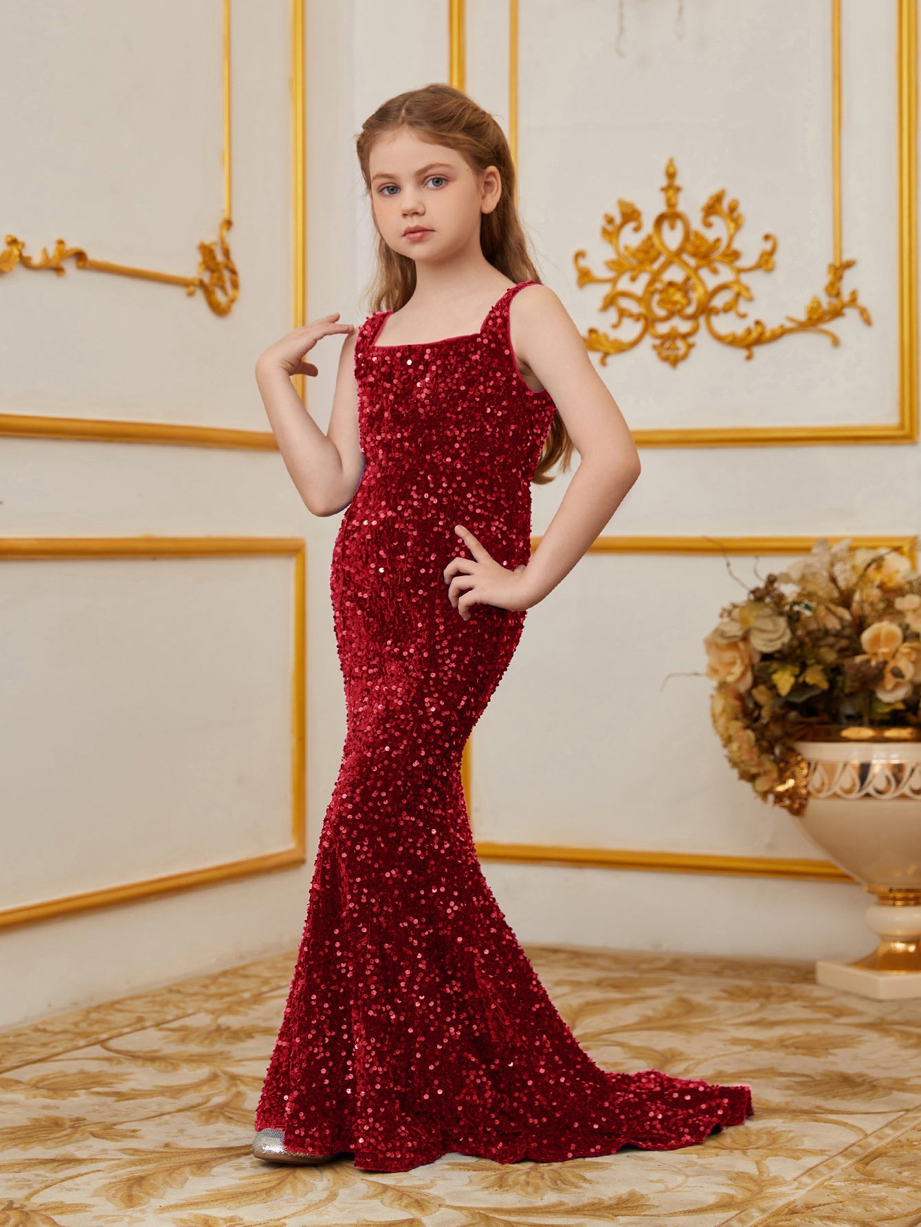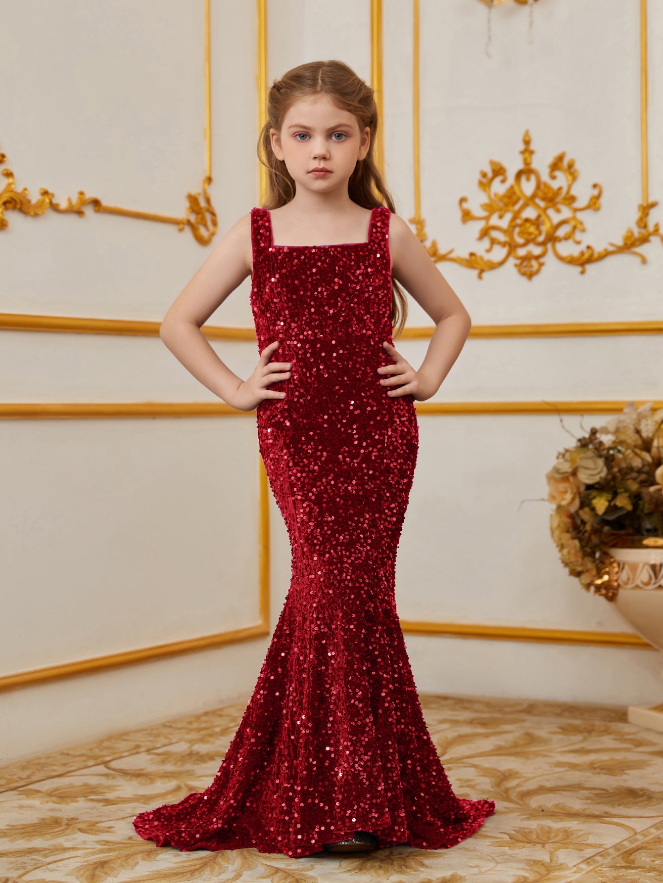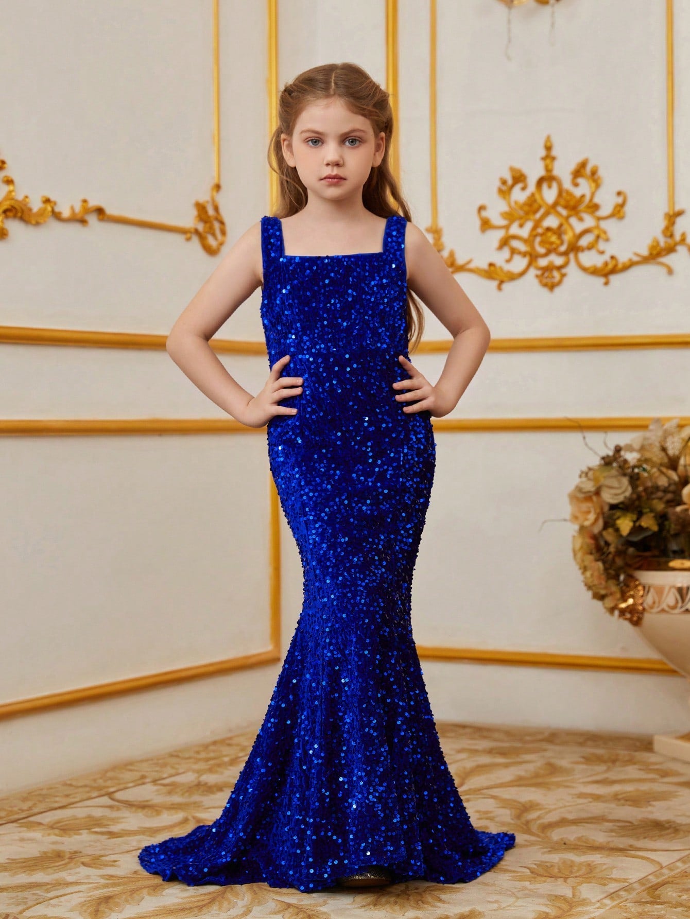Illuminate your special occasion with our dazzling sequined mermaid gown, designed to make you feel like a true star. The gown features a sleek, sleeveless design with a fitted bodice that accentuates your figure, flowing into a stunning mermaid silhouette. The intricate sequin detailing catches the light, creating a glamorous and eye-catching effect.