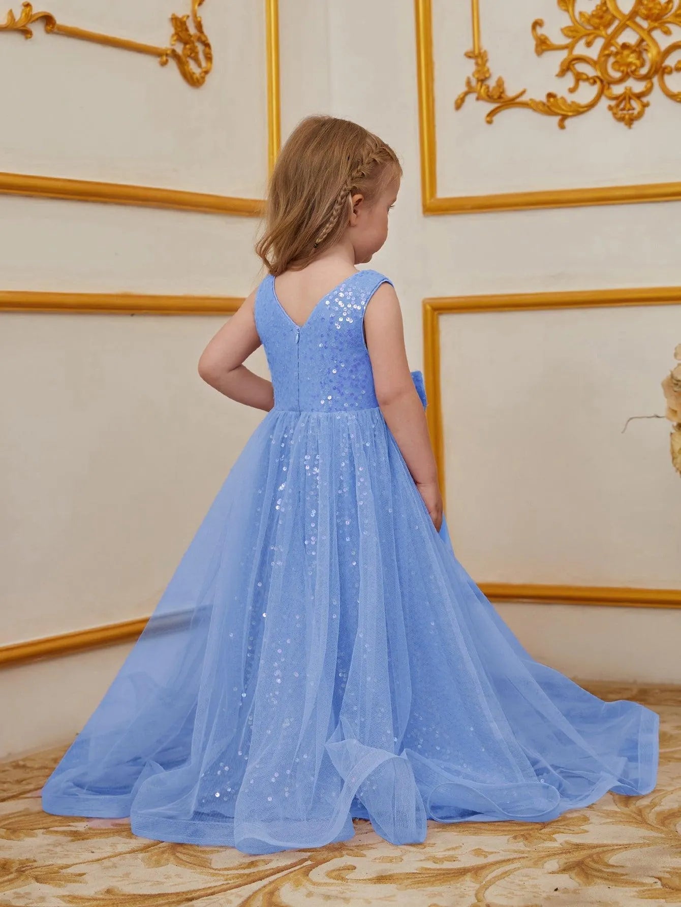 Step into elegance with this exquisite sequin dress, designed to make your little one the center of attention at any event.